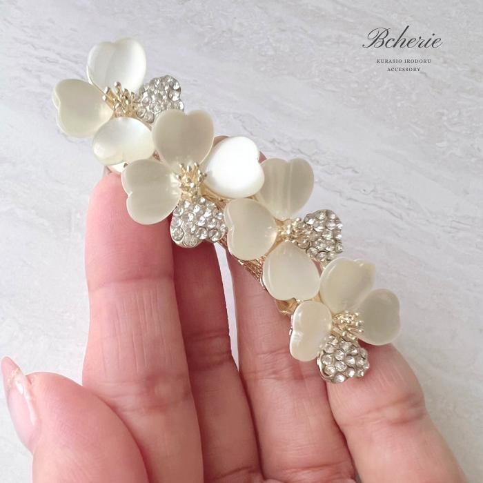 バレッタ 髪飾り パール 小さめ シン