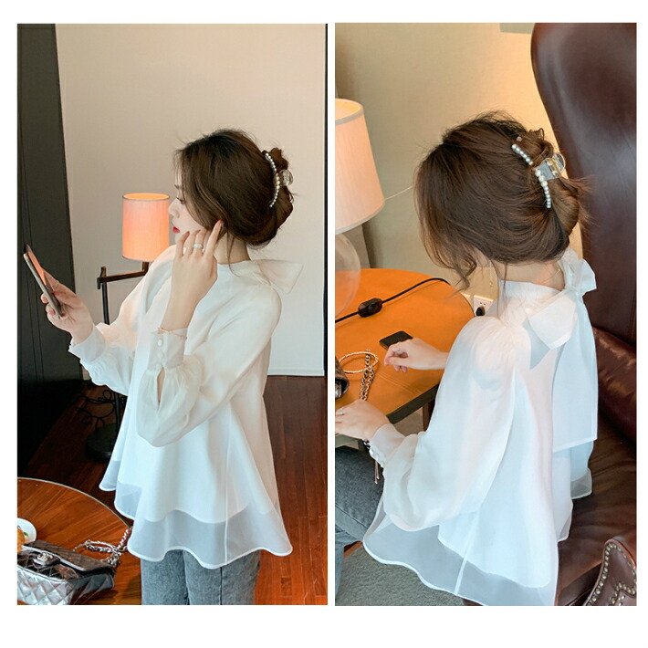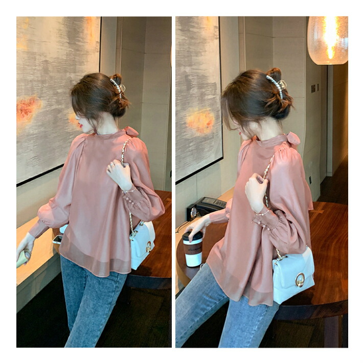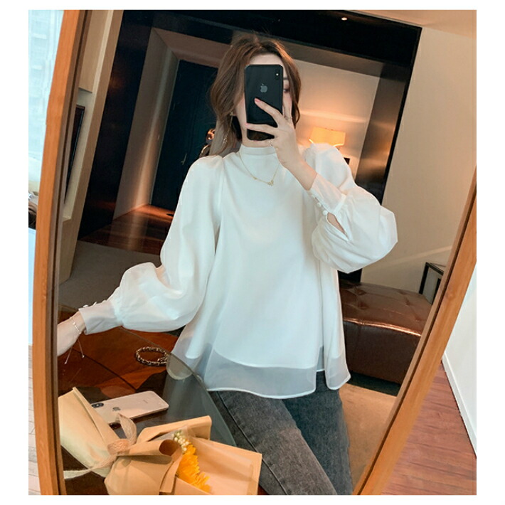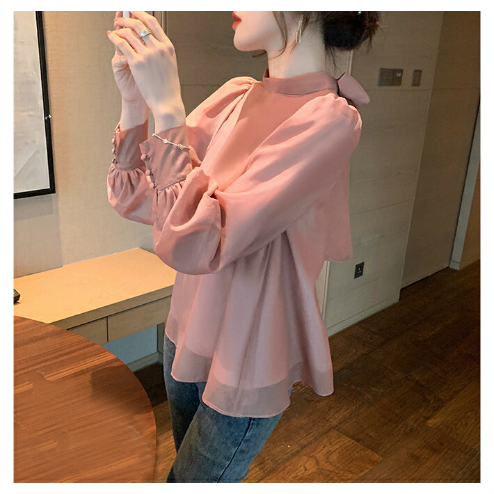 シフォンブラウス シアーブラウス ボリューム袖