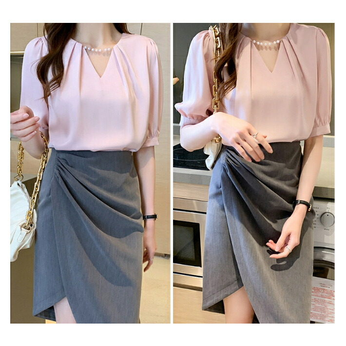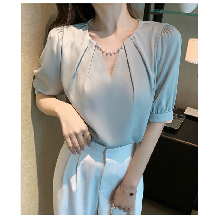 シフォンブラウス シアーブラウス ボリューム袖