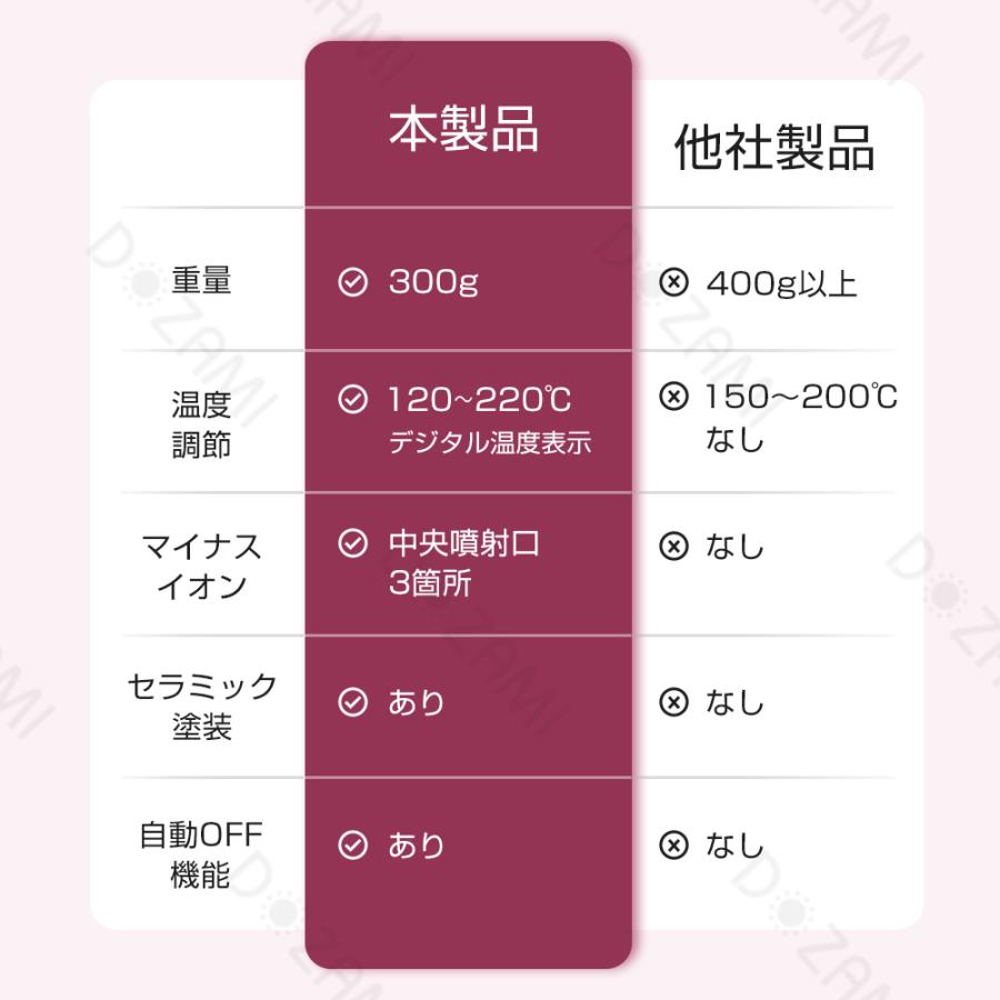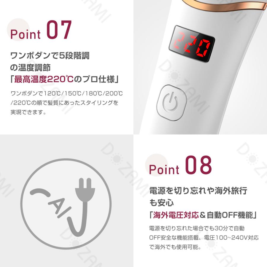 【5段温度設定&デジタル温度表示】一目でわかる数字で温度を表示しているディスプレイ、ワンボダンで120℃/150℃/180℃/200℃/220℃の順で髪質にあったスタイリングを実現できます。