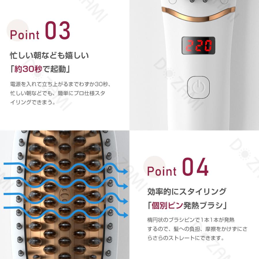 【30分で自動オフ】耐熱保護プレートによる発熱、ヘアアイロンブラシは火傷防止シェルの設計を採用しているため、やけどをしたり、熱くてびっくりするような心配なく、髪を真っ直ぐにケアすることができます。また、30分自動スリープ機能を搭載し、常にお客様の安全を守ります。