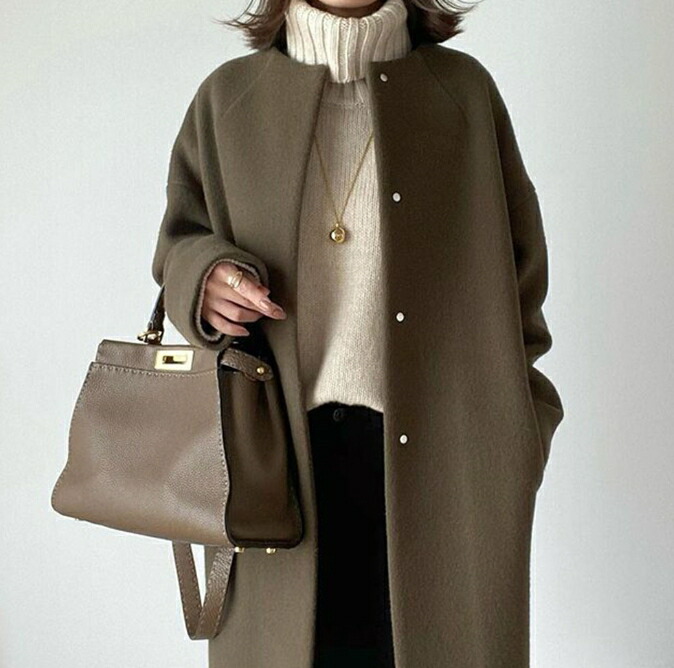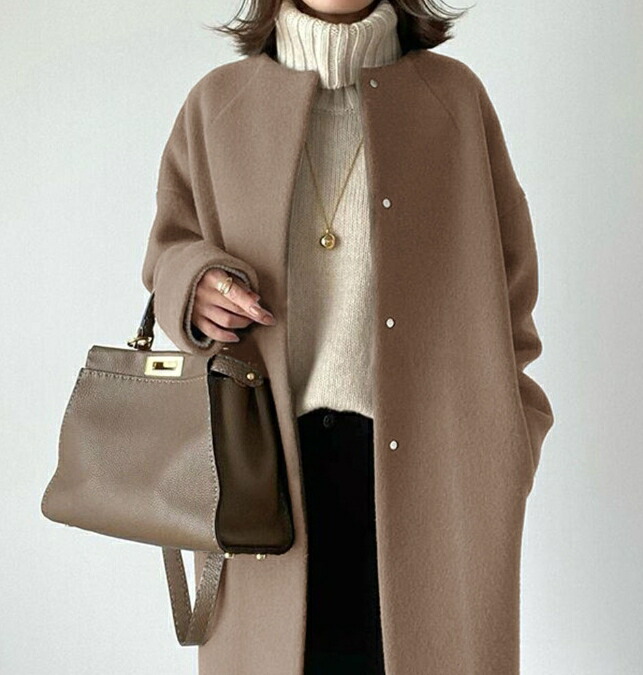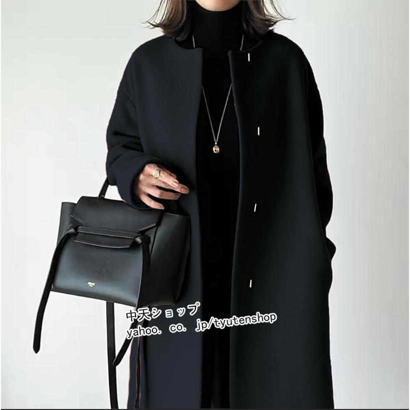 チェスターコート秋冬アウター レディース 秋 40代50代 ロング丈チェスターコートアウターノーカラーコート シンプル 着痩せ 通勤 気質 エレガント2024新作