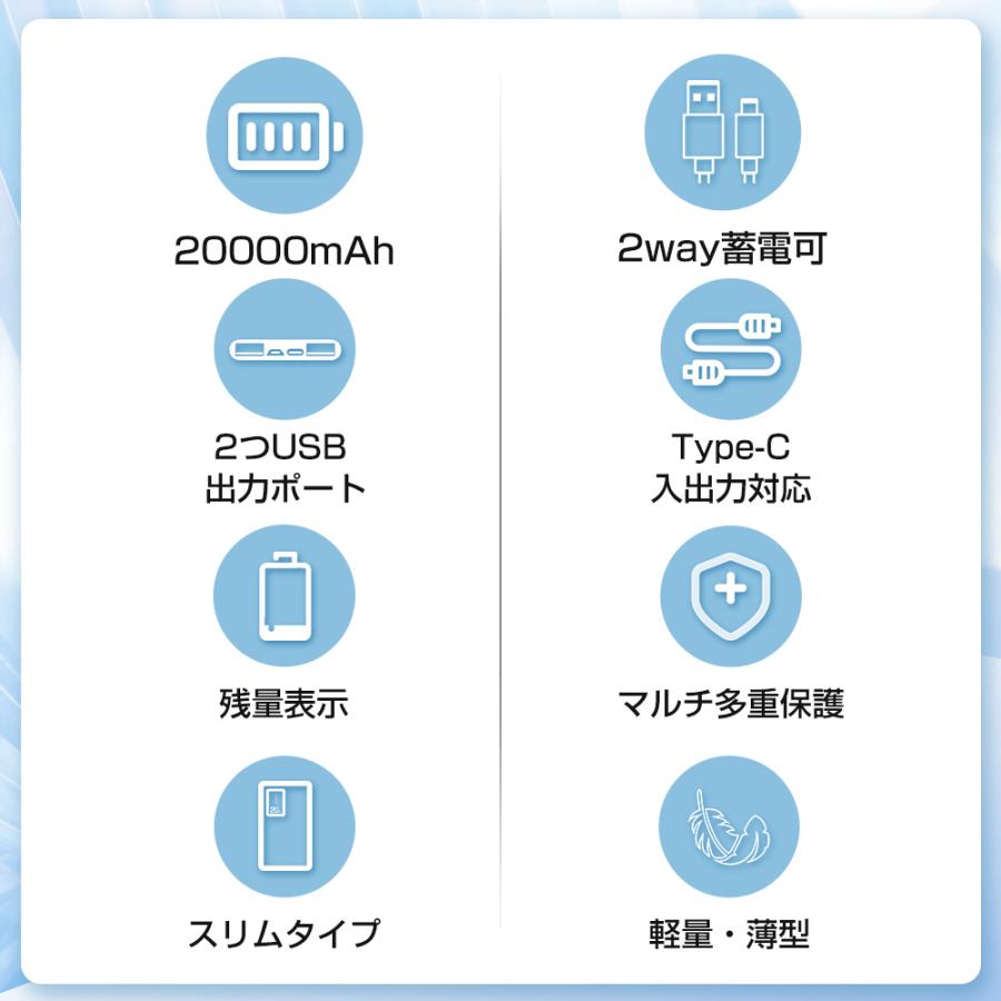 モバイルバッテリー 20000mAh 大容量 軽量 急速充電器 3台同時充電 薄型 5v 2a Type-C iPhone Android