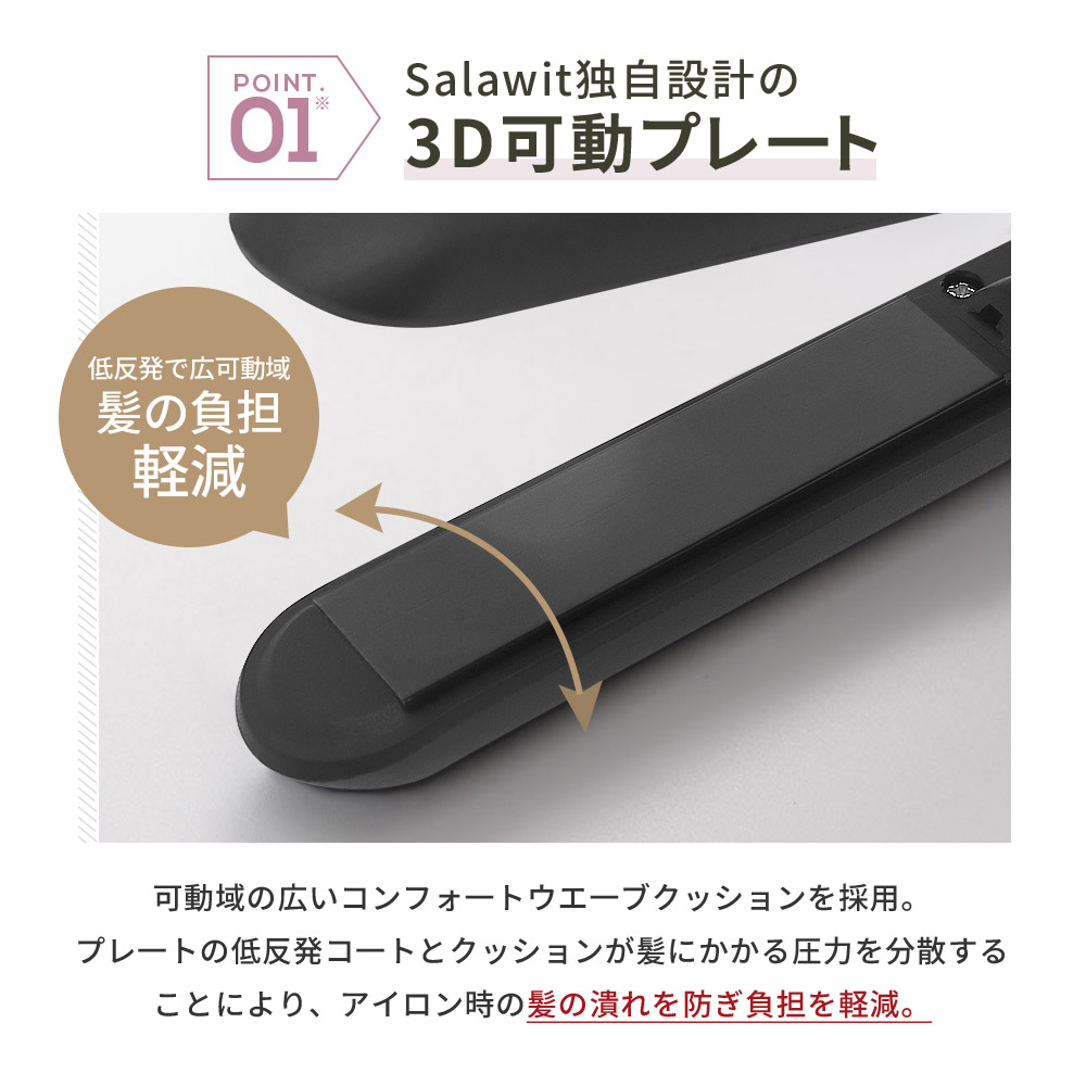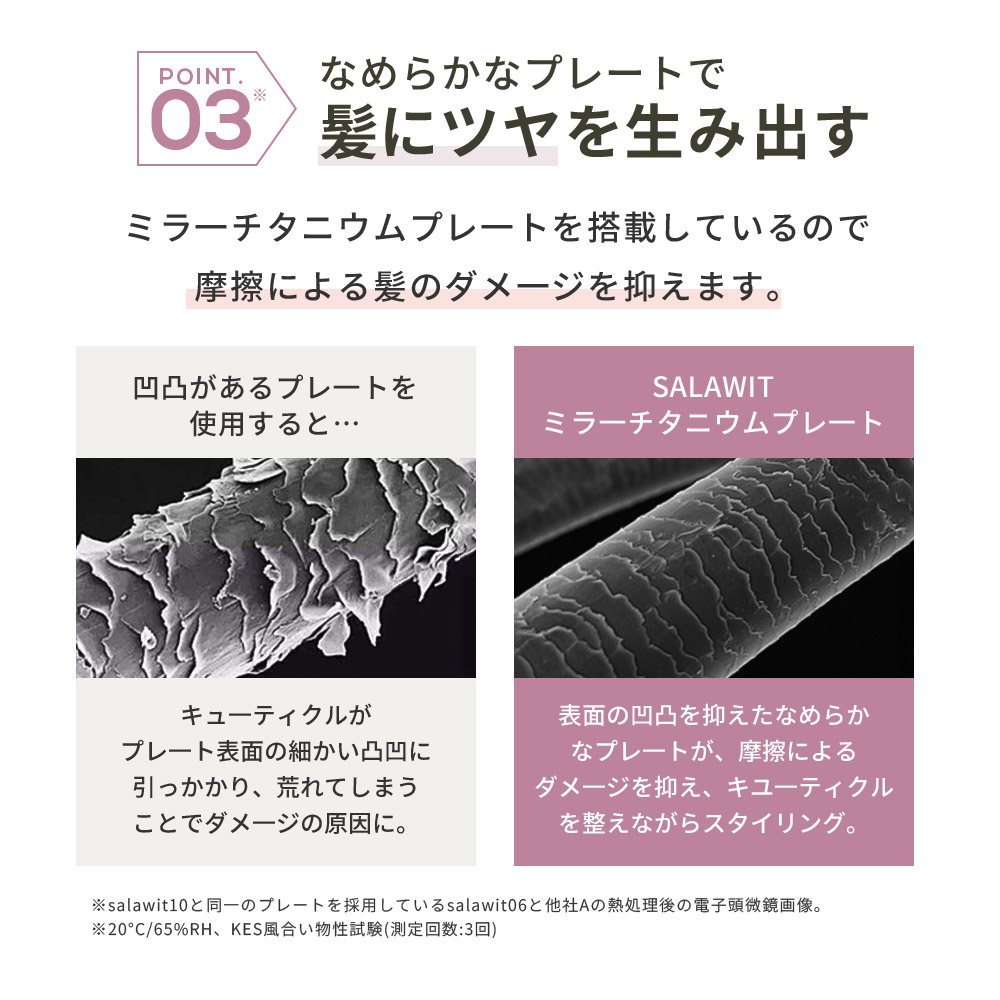 高品質のチタニウムプレートを採用。摩擦を押え滑らかな使い心地を実現しましたダメージを軽減させながらのスタイリングが可能です。