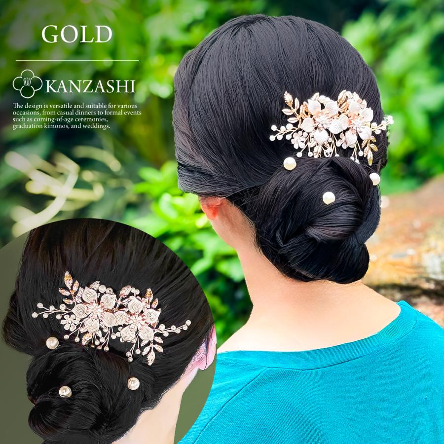 かんざし ヘアピン 髪飾り 和装 留袖 おしゃれ パール ヘアアクセサリー 40代 50代 60代 ゴールド シルバー