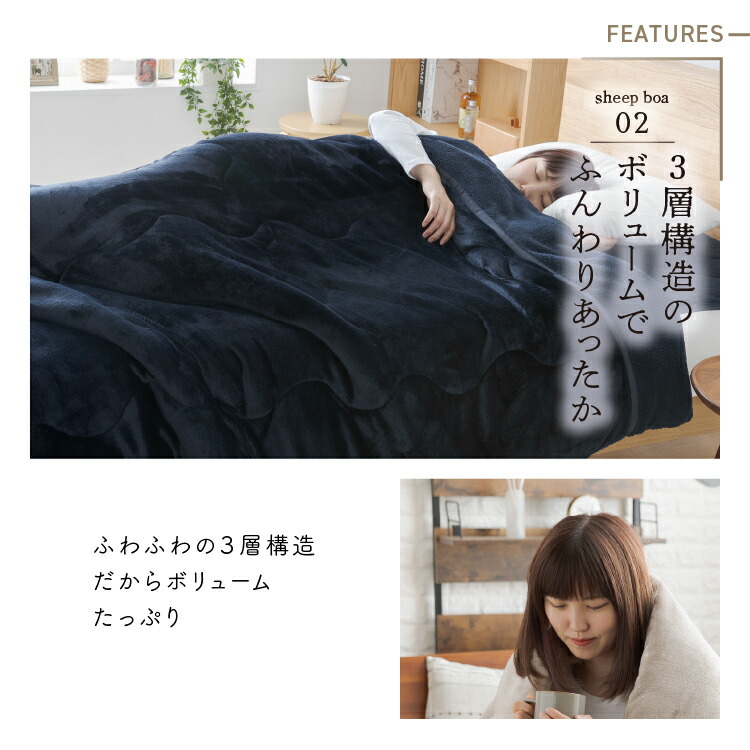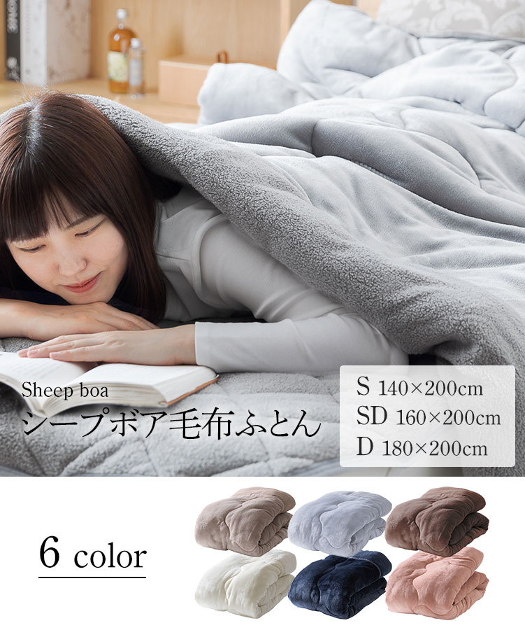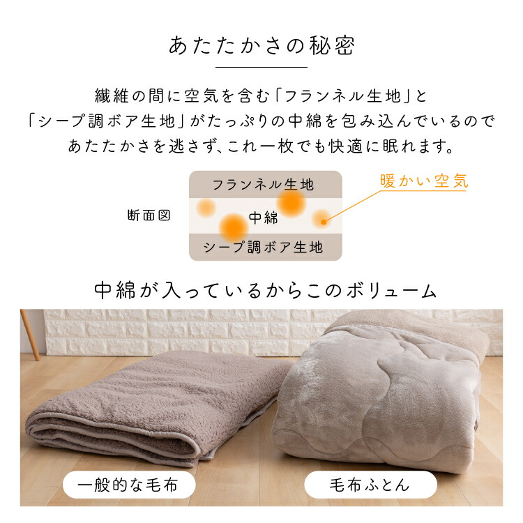 掛け布団 冬 寝具 綿入り 保温 シープボア ふとん フランネル生地 フランネル シープ調ボア 3層構造 ふんわり あったか あったかい 暖かい 温かい 丸洗い 洗濯 清潔 もこもこ モコモコ ボリューム 洗濯機 グレージュ ライトグレー モカブラウン アイボリー ダークネイビー スモーキーピンク