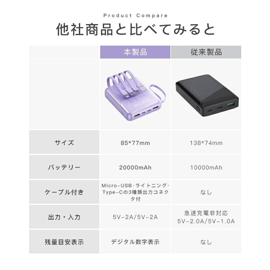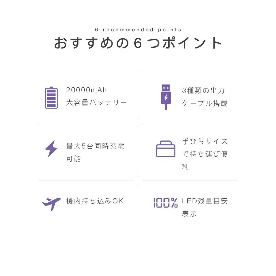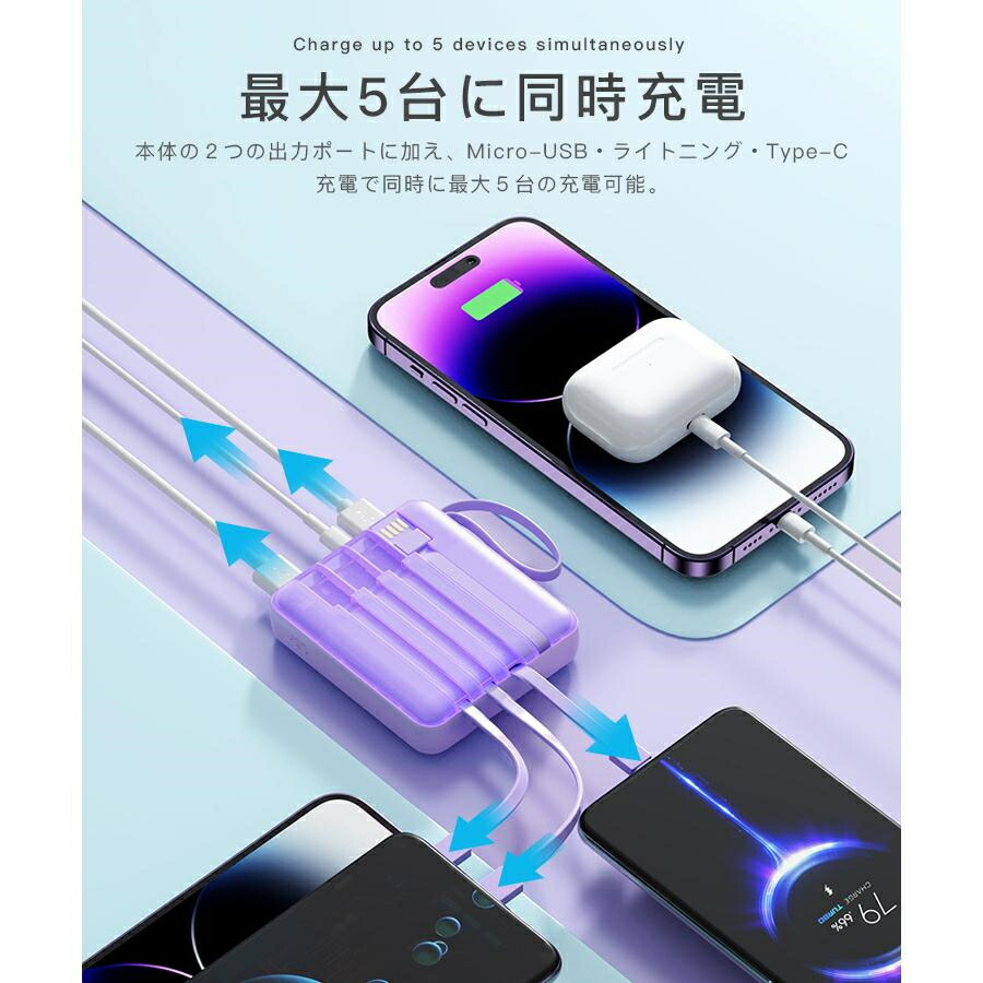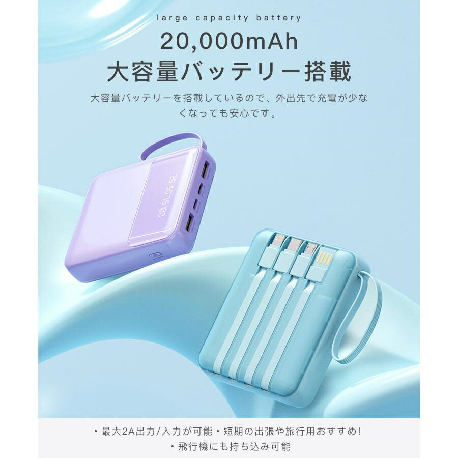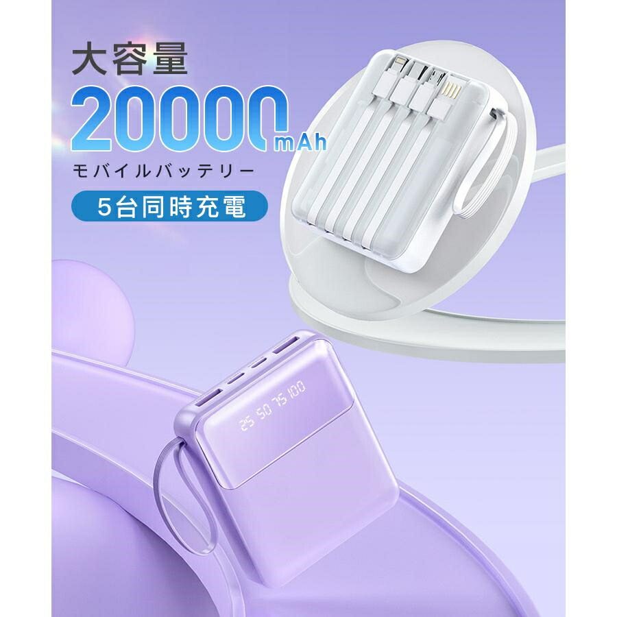 モバイルバッテリー 20000mAh 大容量 小型 3in1 4台同時充電 iphone15 PSE認証済 急速充電 携帯充電器 防災 iPhone iPad Android 各種対応 軽量
