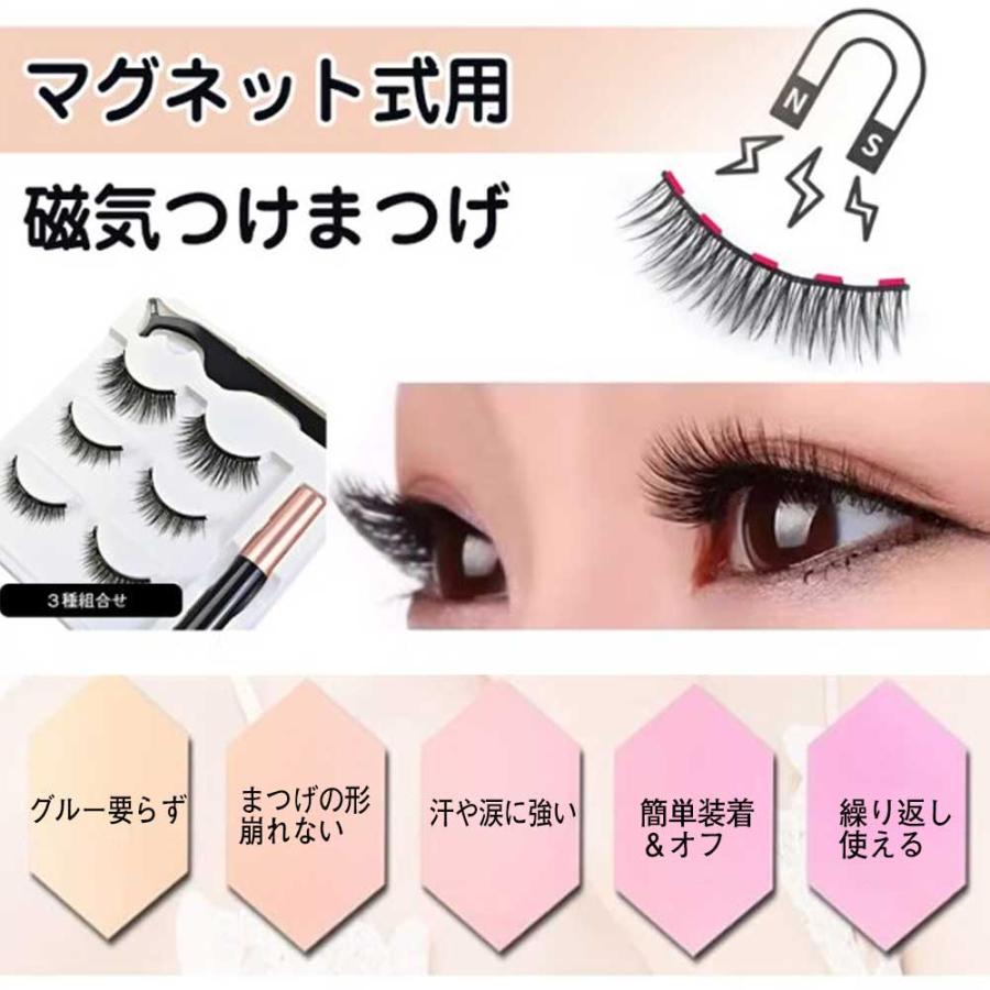 つけまつげ マグネット 磁気 3ペア ナチュラル 簡単 再利用可能 ピンセット付き 接着剤なし 時短 メイク アイライナー つけま まつげ セットアイラッシュ