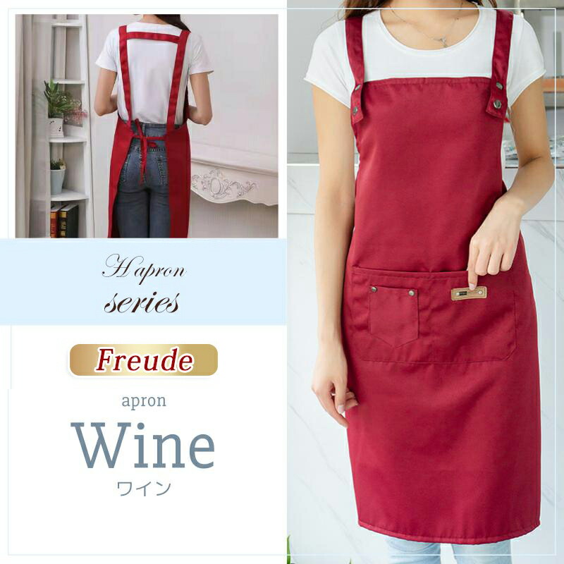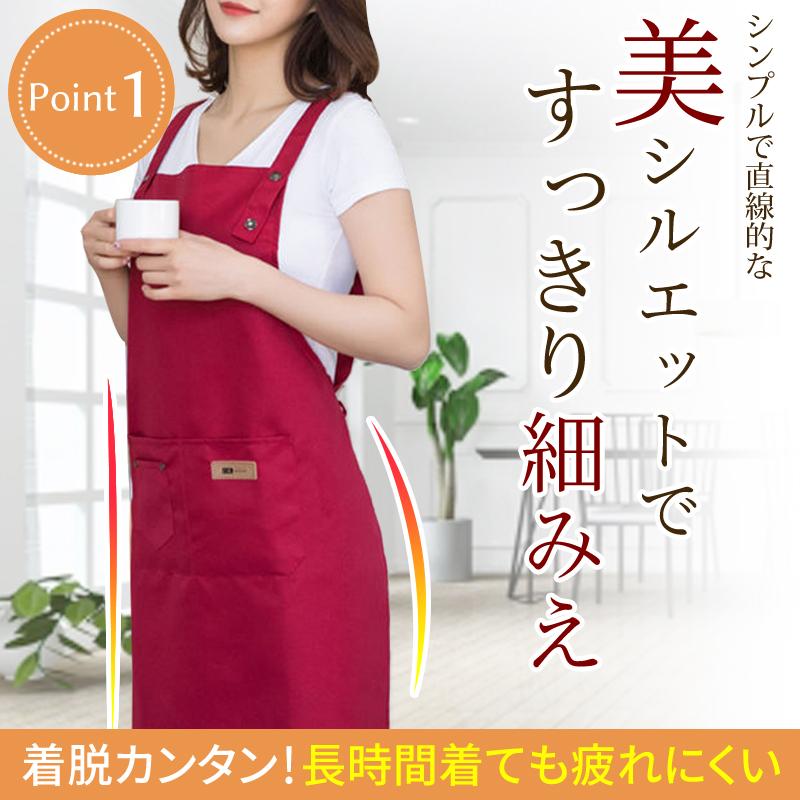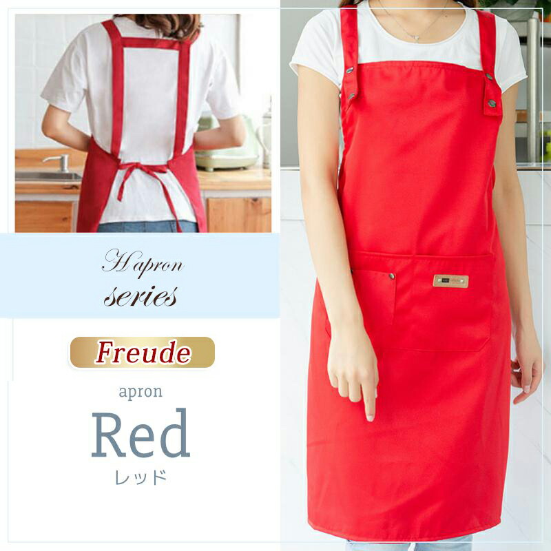 ワーク 女性 かぶり aライン 無地 シンプル ミドル 作業中 赤 プレゼント キッチン