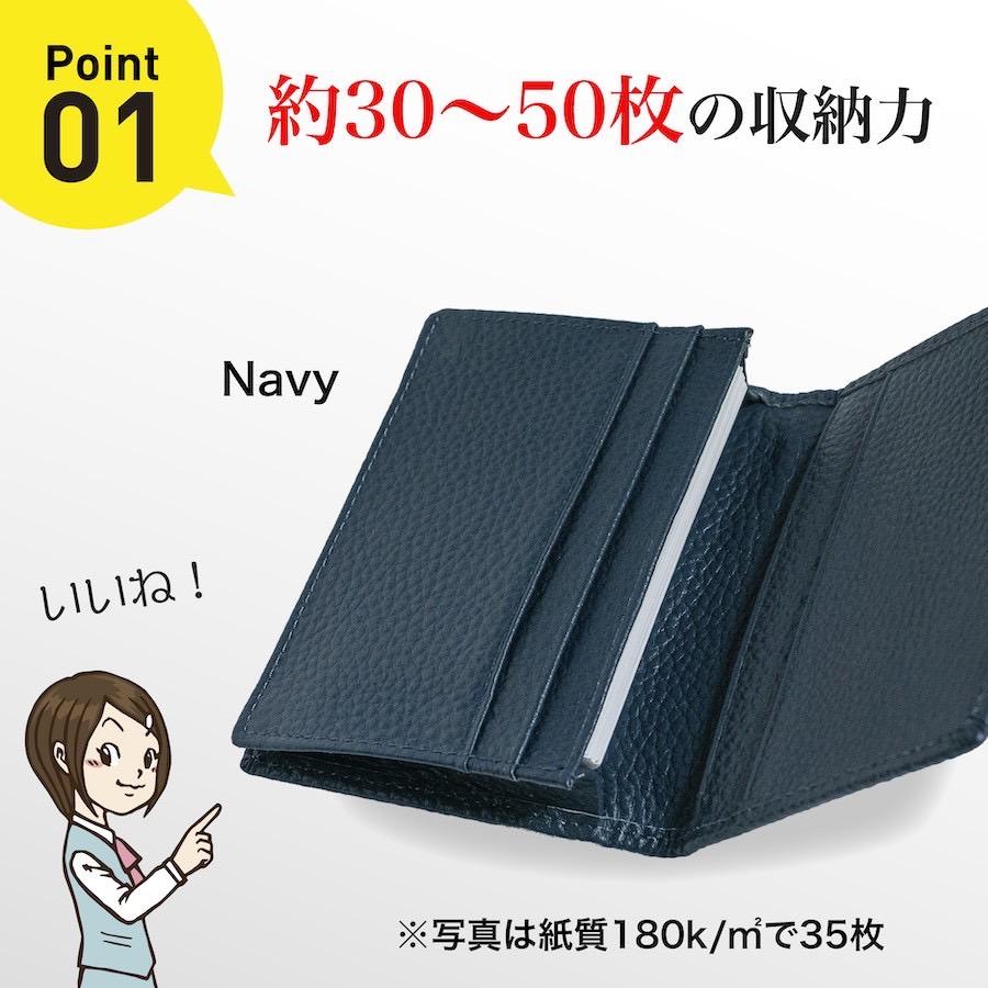 大容量: 一般的な名刺サイズで約50枚以上の収納が可能。複数の名刺やカードを収納可能。ビジネスカード、クレジットカード、IDカードなども一括管理
