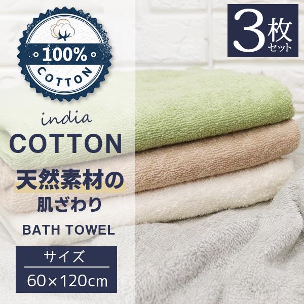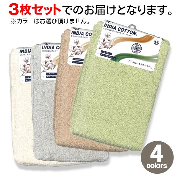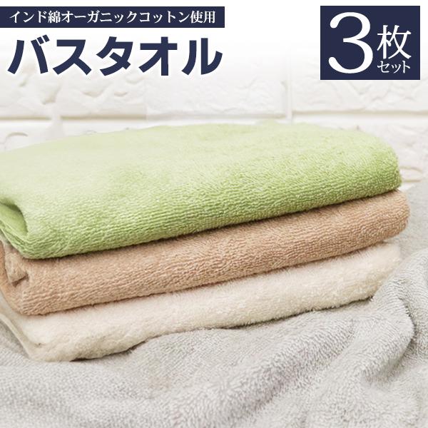 オーガニックコットン使用 インド綿バスタオル 3枚セット