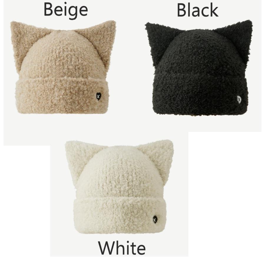 かわいい 猫耳ニット帽 ベージュ ブラック ホワイト レディース ウール 秋冬 暖かい 耳保護 ニット 帽