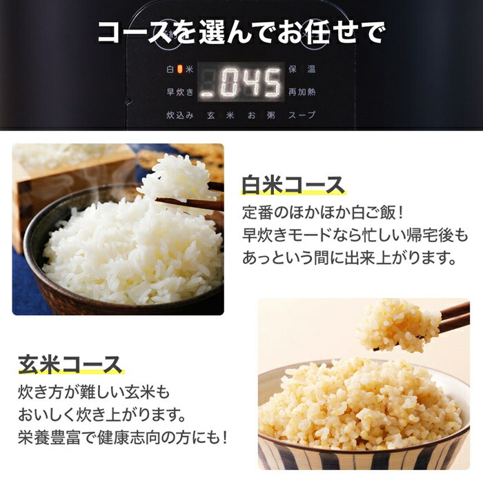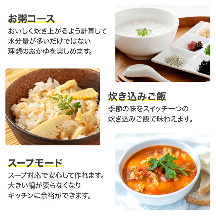 メニュー:白米、早炊き、炊込み、玄米、お粥、スープ、再加熱