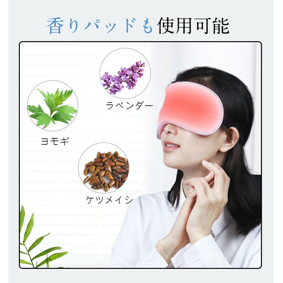 温感&冷感&振動 ホットアイマスク USB 充電式 コードレス 3段階温熱ケア 5段階振動 アイマスク 目元 睡眠 安眠 快眠 グッズ 軽量 ギフト