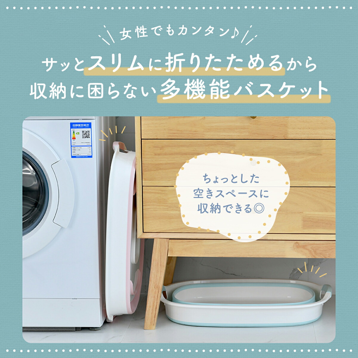 サッとスリムに折りたためるから収納に困らない多機能バスケット。