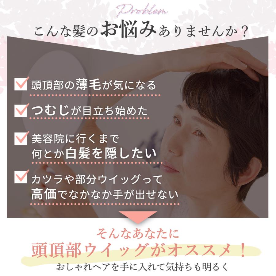 最近、「頭頂部の薄毛が気になるつむじが目立ち始めた美容院に行くまで何とか白髪を隠したいカツラや部分ウィッグって高そうで中々手が出せない」こんなお悩みがある方に、頭頂部ウィッグがオススメ!