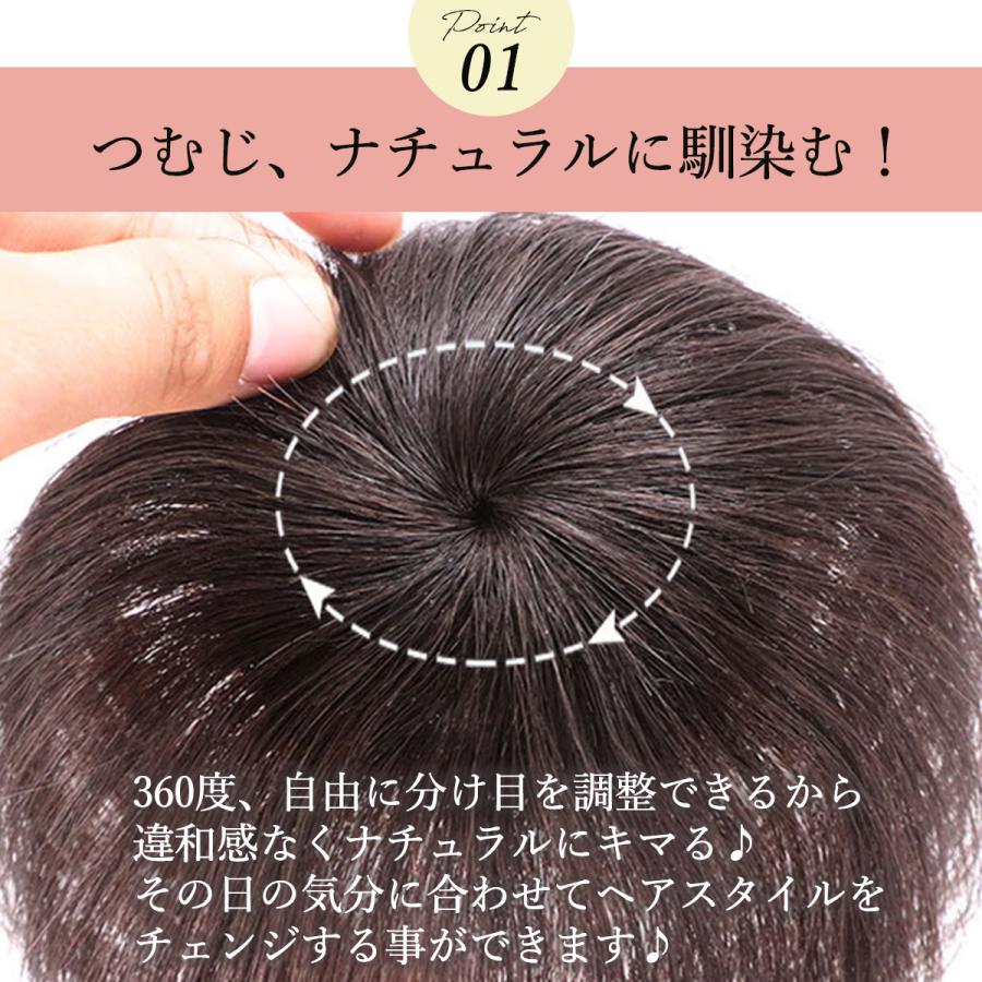 「つむじ、ナチュラルにキマる♪」360°自由に分け目を調整できるから、つむじ部分も違和感なく自然に馴染みます。