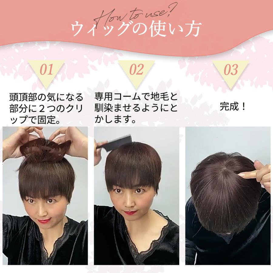 頭頂部 ウィッグ レディース 自然 ショート 白髪かくし 女性 つけ毛 白髪隠し 薄毛 部分ウィッグショートヘア かつら つむじ ショート ヘアピース つけ毛 ポイントウィッグ コーム付き