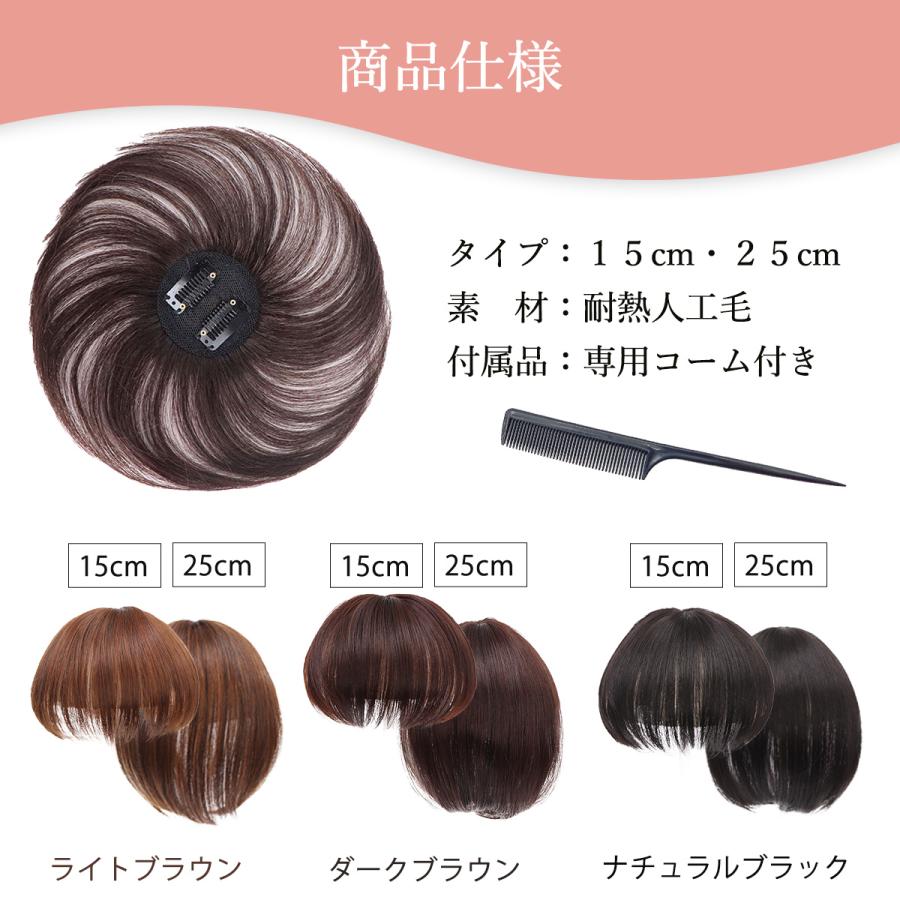 髪色に合わせて3カラーからお選びいただけます。さらに長さも15cm、25cmの2タイプご用意!より自然に地毛に馴染むヘアピースをご購入いただけます♪専用コーム付き。