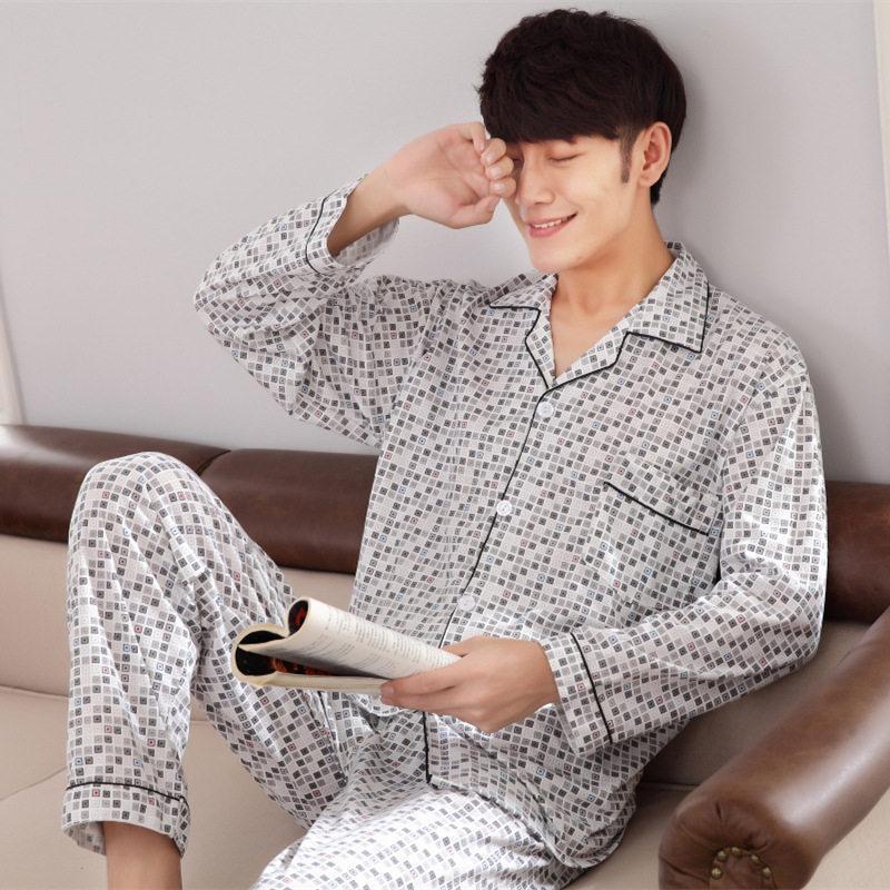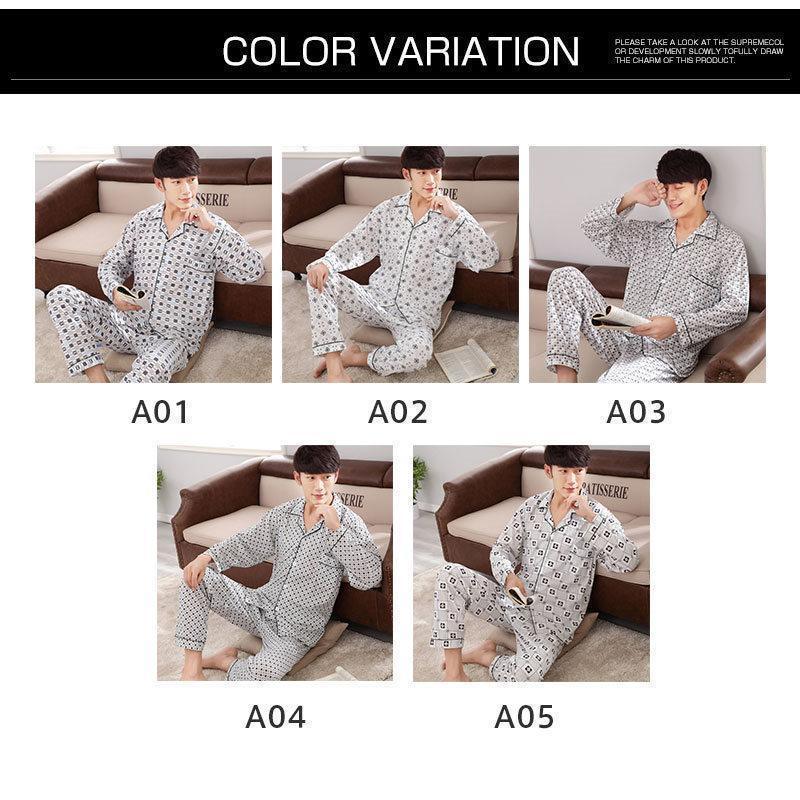メンズ パジャマ 長袖 長ズボン 前開