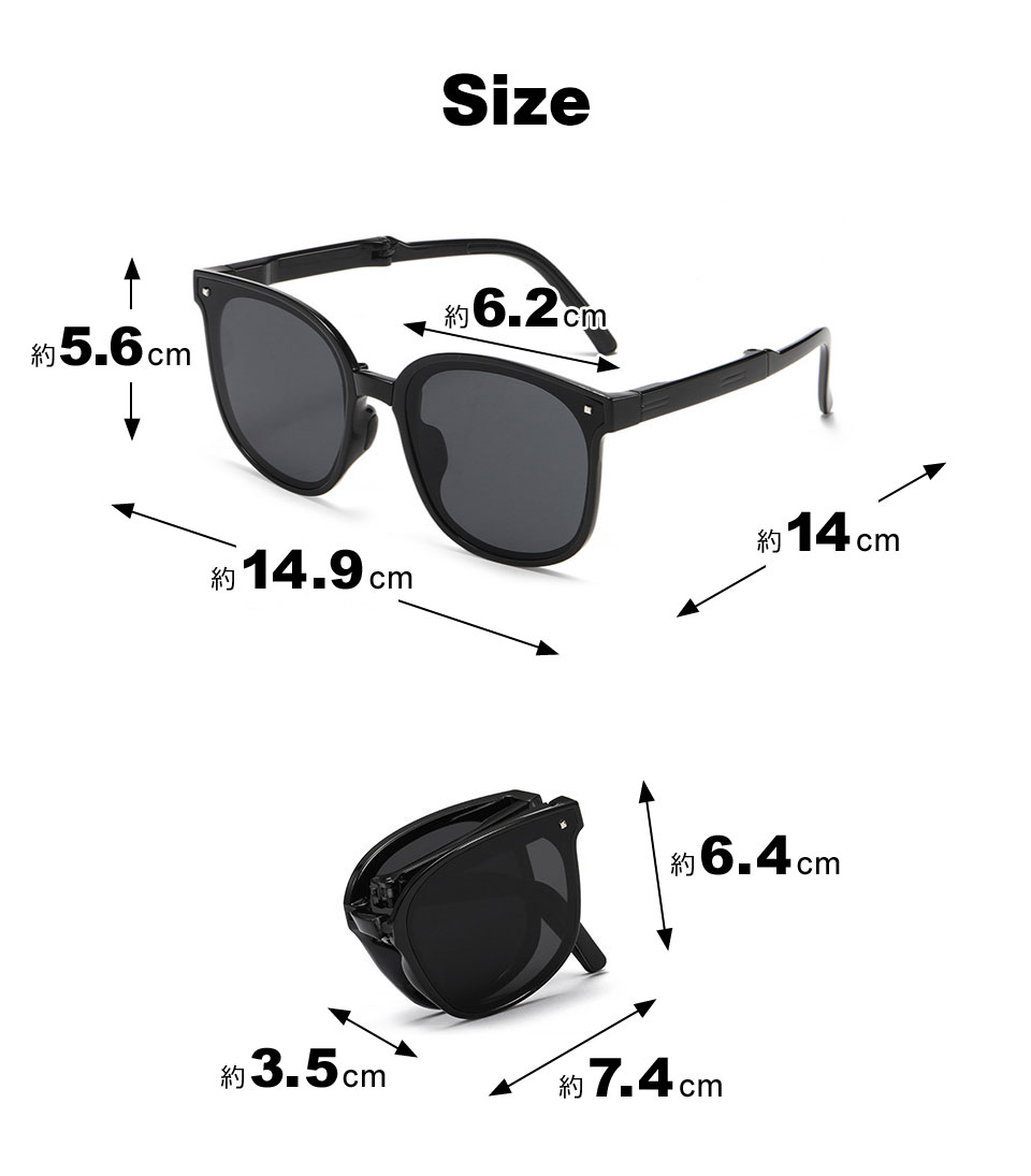 コンパクトに折りたたみできるサングラス。普段使いはもちろん、車内に常備したり、アウトドアや旅行などで持ち運びに便利な折りたたみサングラスです。