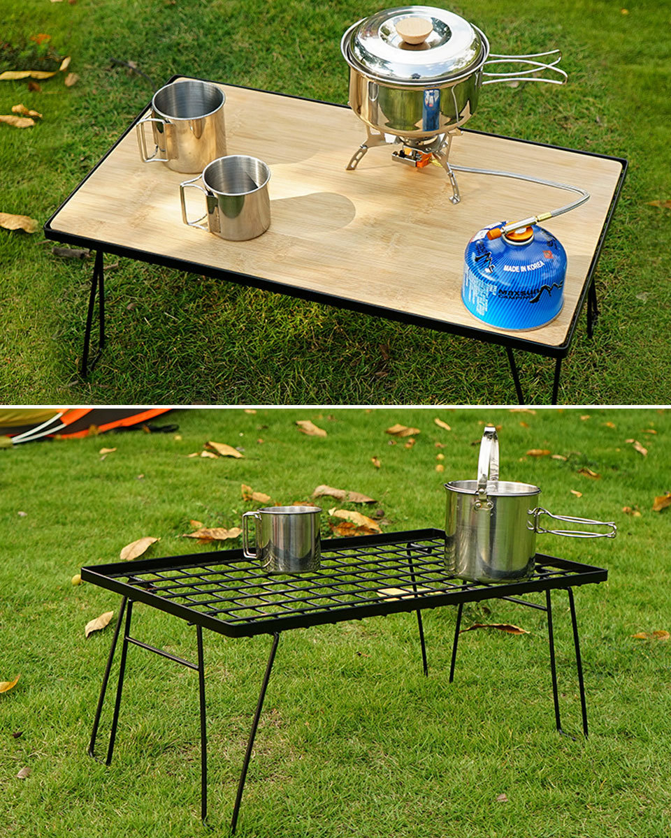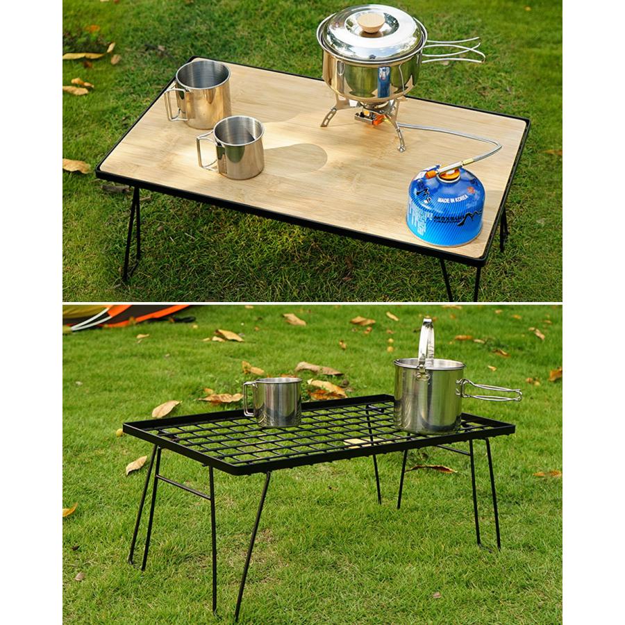 【熱いものも直接置けるアウトドアメッシュテーブル】