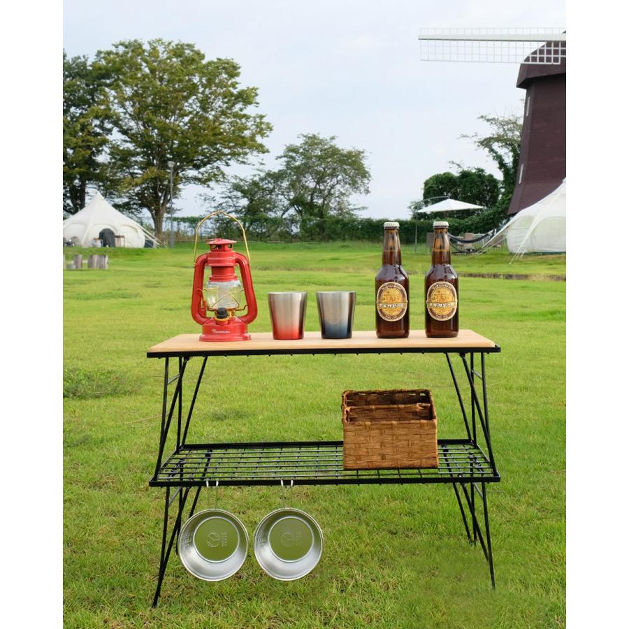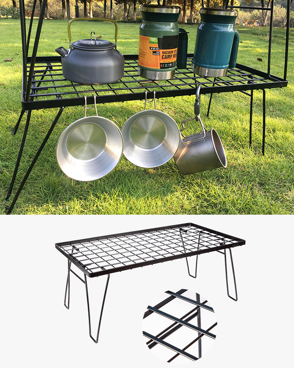 ハンギングラックとしても使えるアウトドアメッシュテーブル