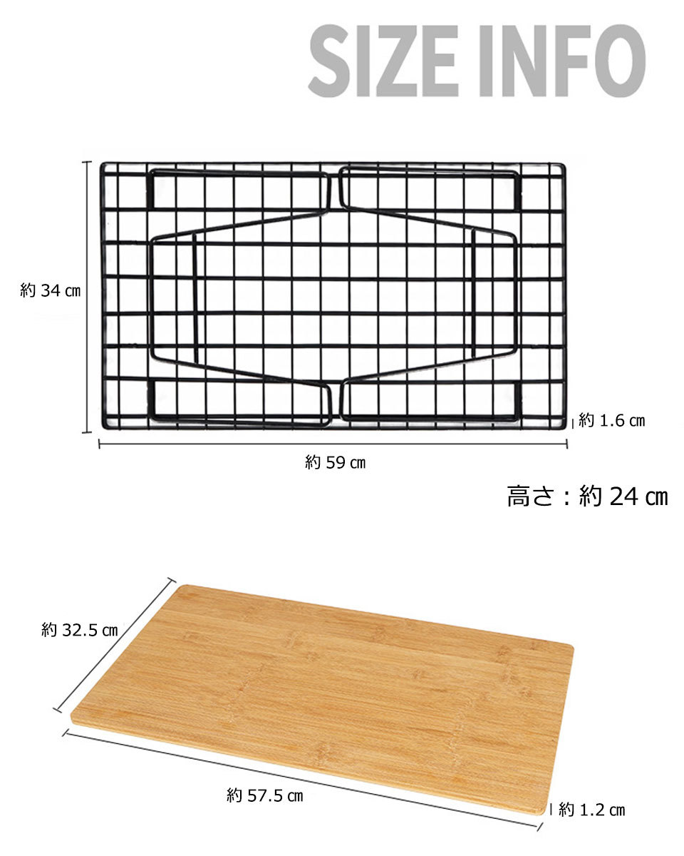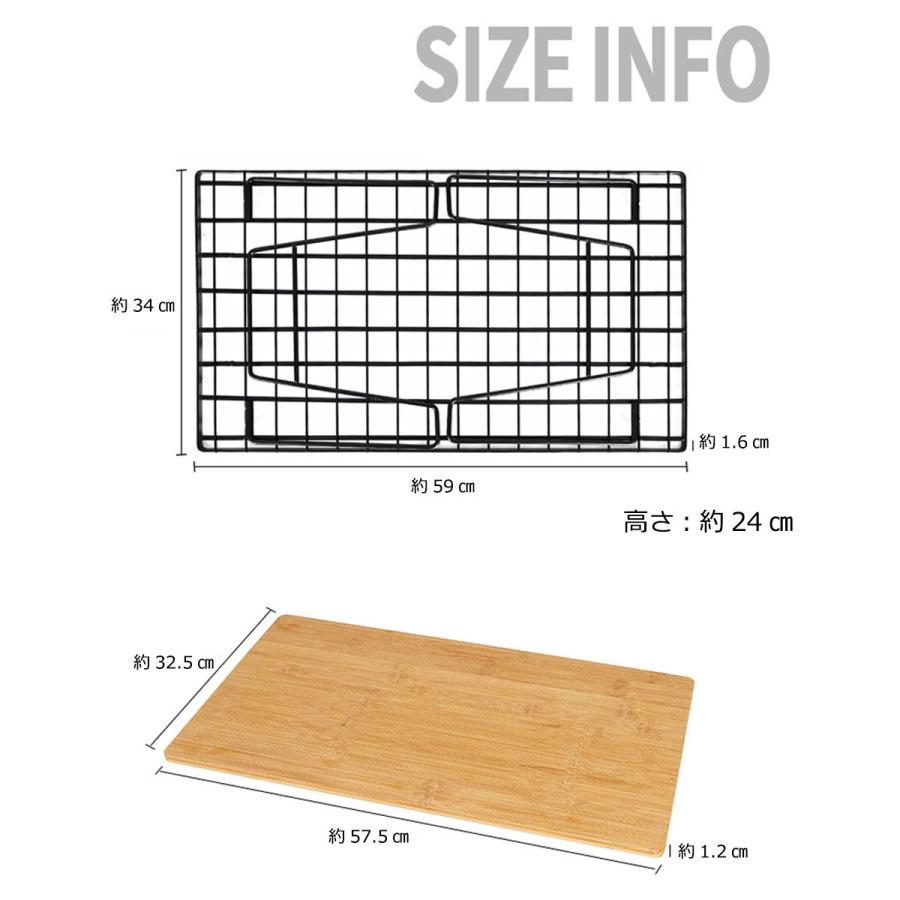 タイプ アウトドアメッシュテーブル(天板、専用バッグセット)カラー ブラックサイズ テーブル(約59cm×約34cm×約24cm)、天板(約57.5cm×約32.5cm×約1.2cm)素材 テーブル(スチール)、天板(竹)、専用バッグ(オックスフォード生地)セット内容 天板×1枚、テーブル×2台、専用バッグ×1個商品について 【折りたたみ式のアウトドアメッシュテーブル】