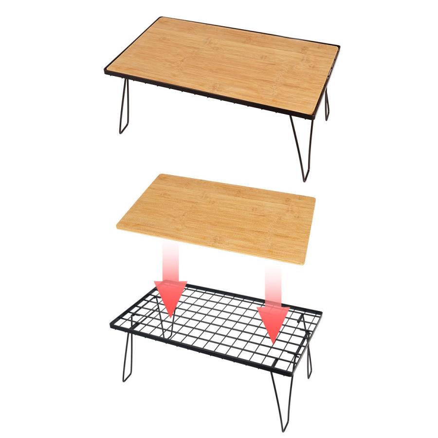 天板は竹製なので、耐久性、殺菌力、抗菌に優れています。テーブルとしてはもちろん、調理台としてもオススメのアウトドアメッシュテーブルです。