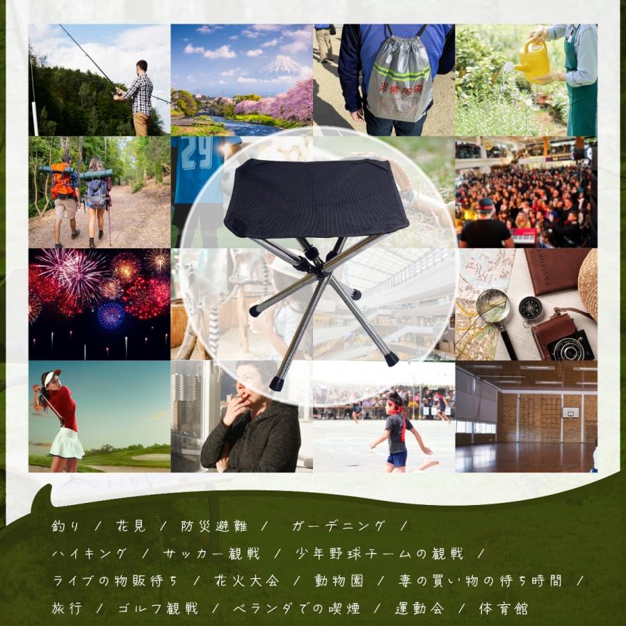 アウトドアチェアとして、行列、キャンプ、お釣り、ハイキング、トレッキング、登山、 花火大会 、運動会、お花見など、いつでもどこでも気軽に使えます。防災対策として、家車内に常備しておけることもオススメ