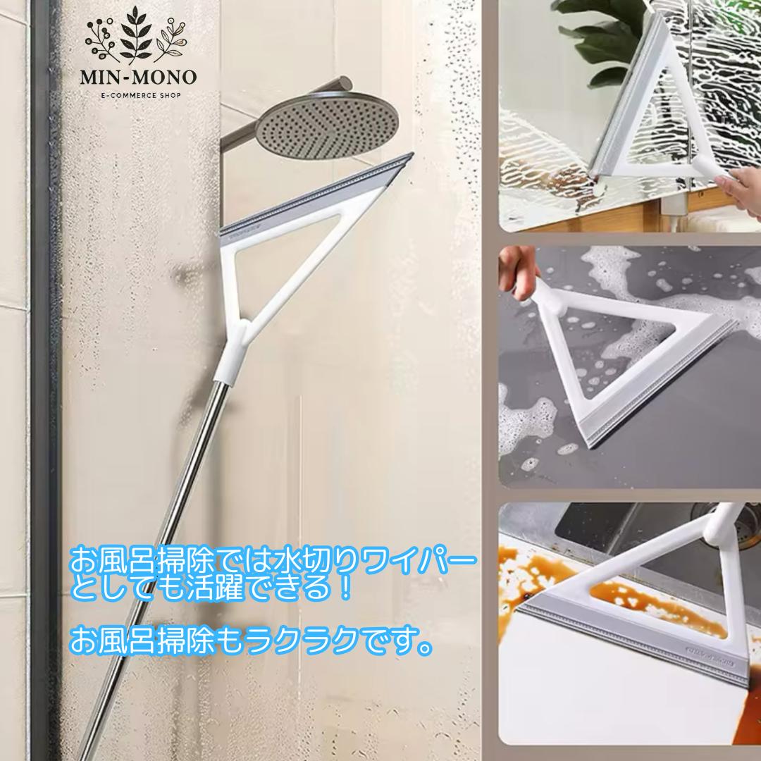 水切りワイパーとしても活躍:お風呂場や窓掃除、洗車後の水切りまでこれ1本で!ゴムヘッドだから液体にも強い。