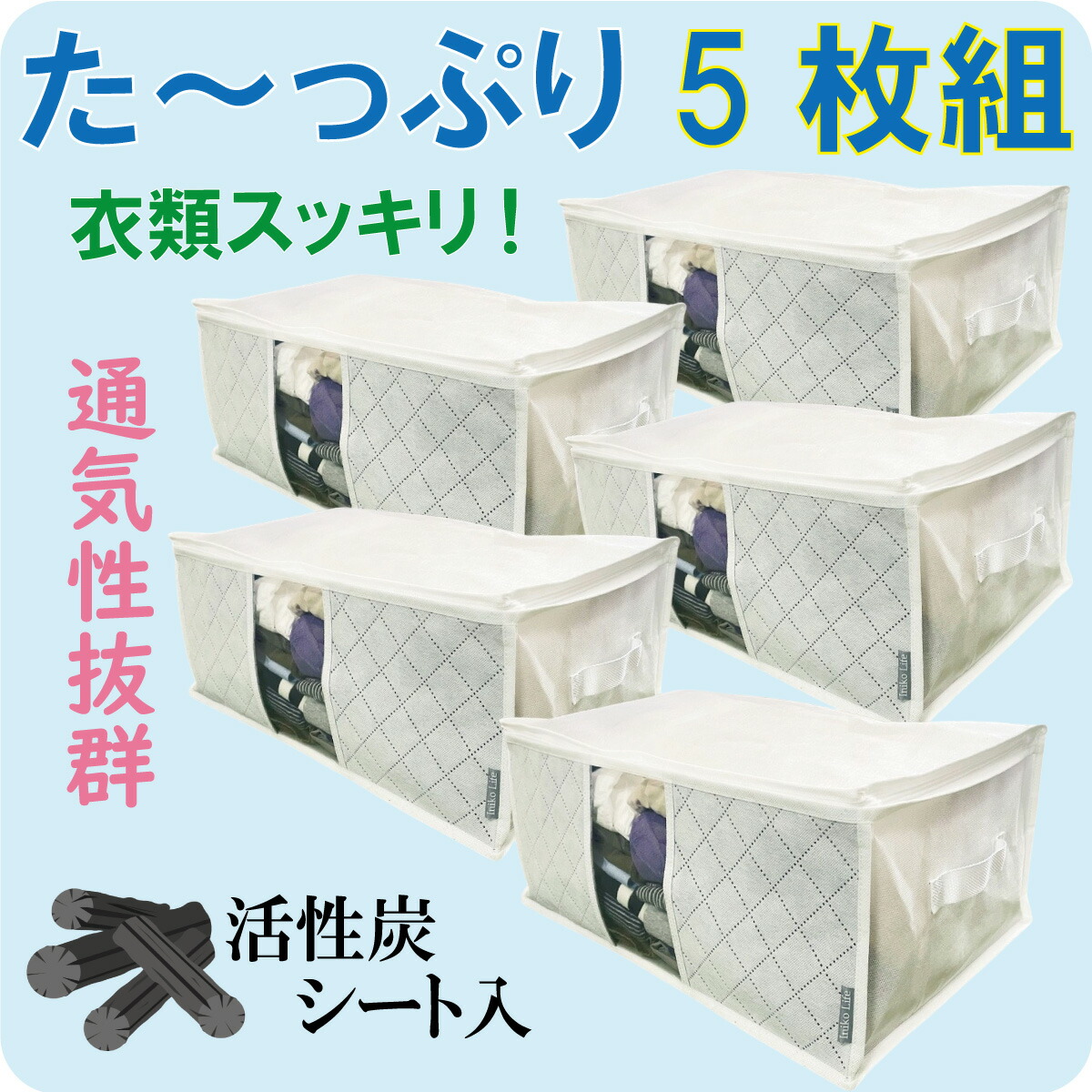 収納ケース 衣装ケース 収納袋 5枚組 炭シート入り 収納 収納ボックス 衣類 大掃除 大容量 おしゃれ 折りたたみ
