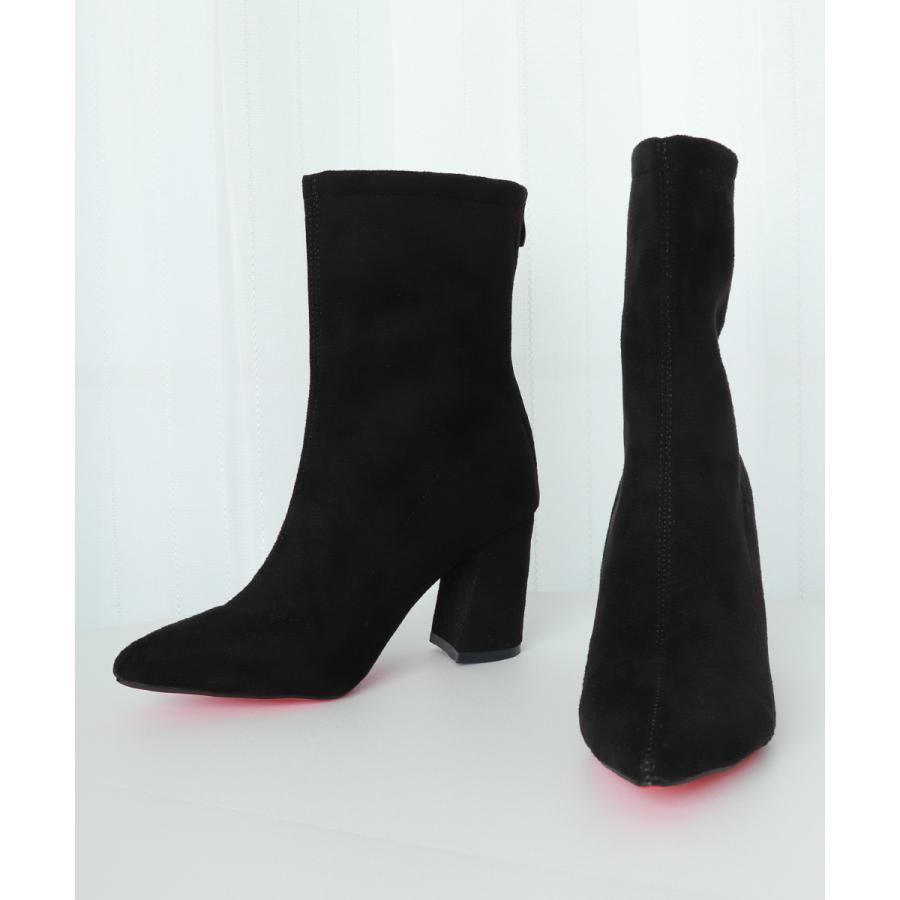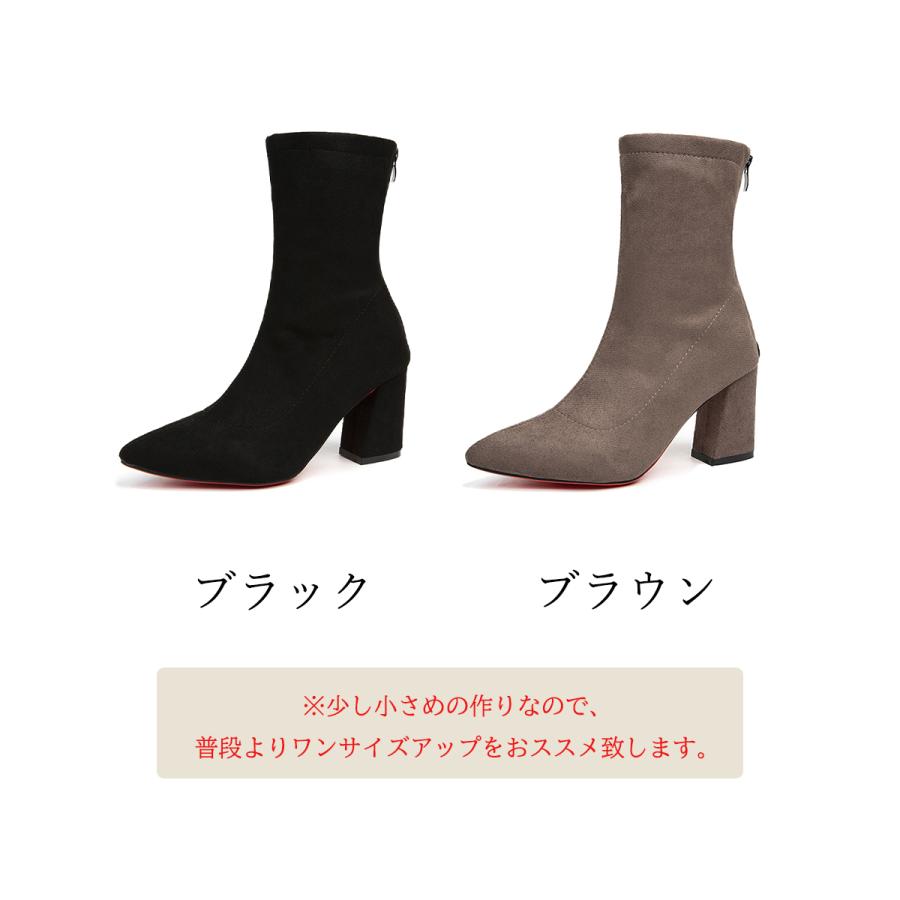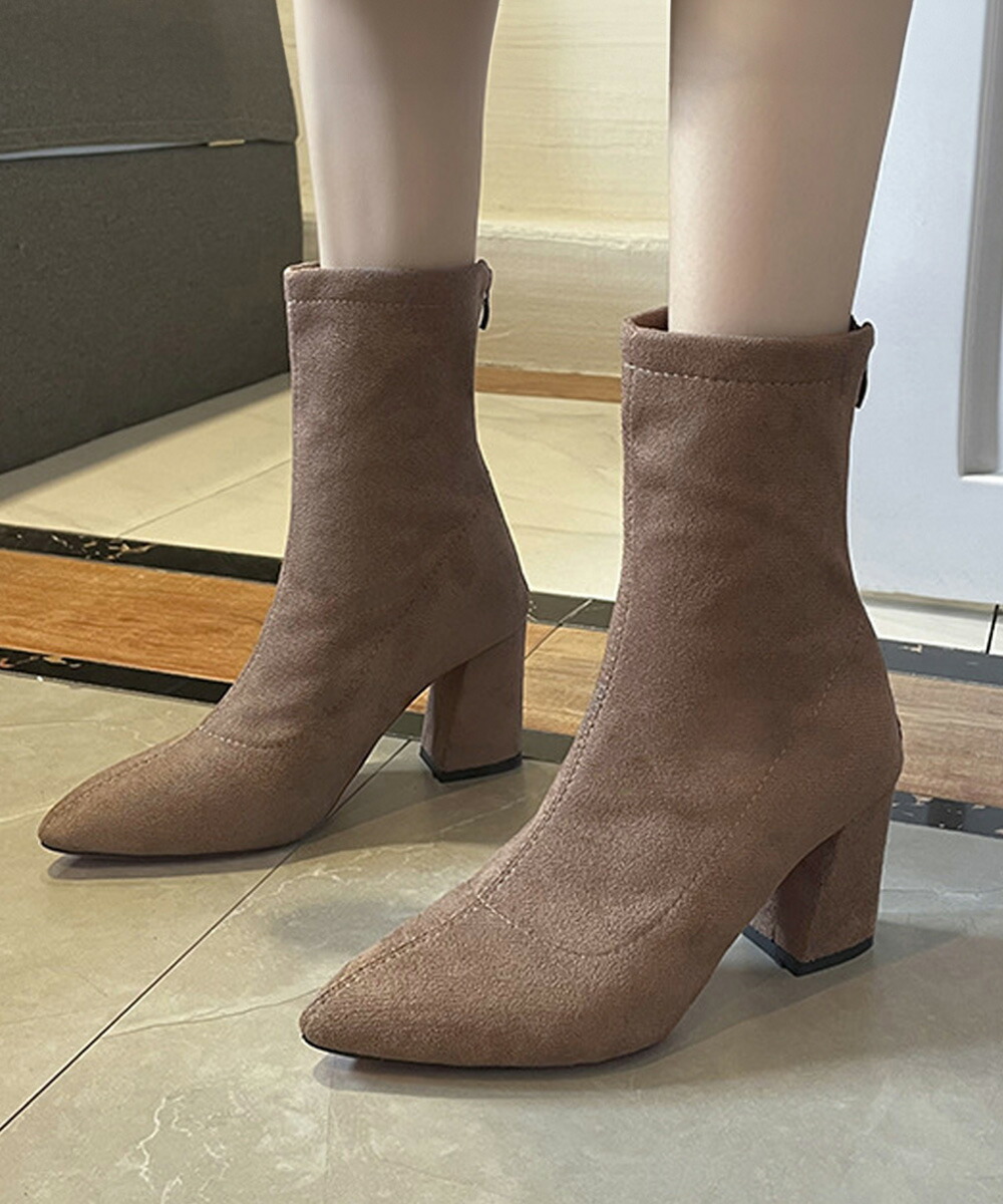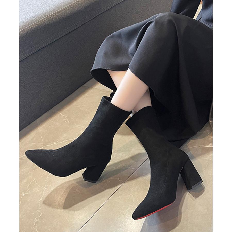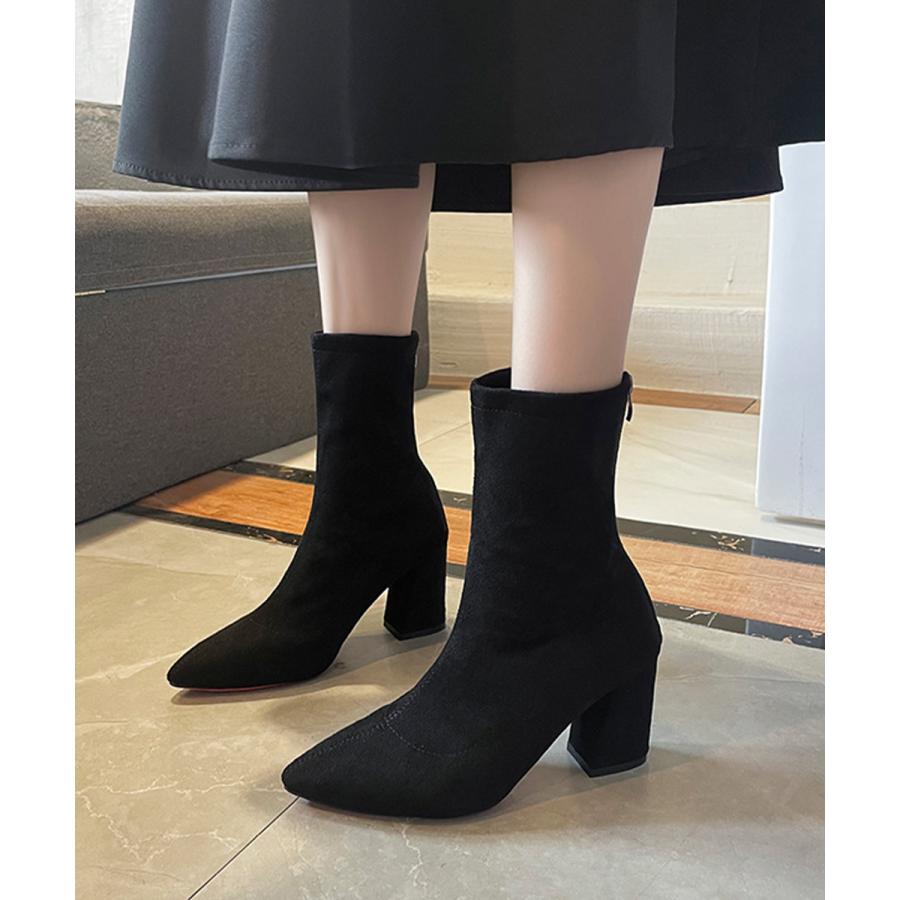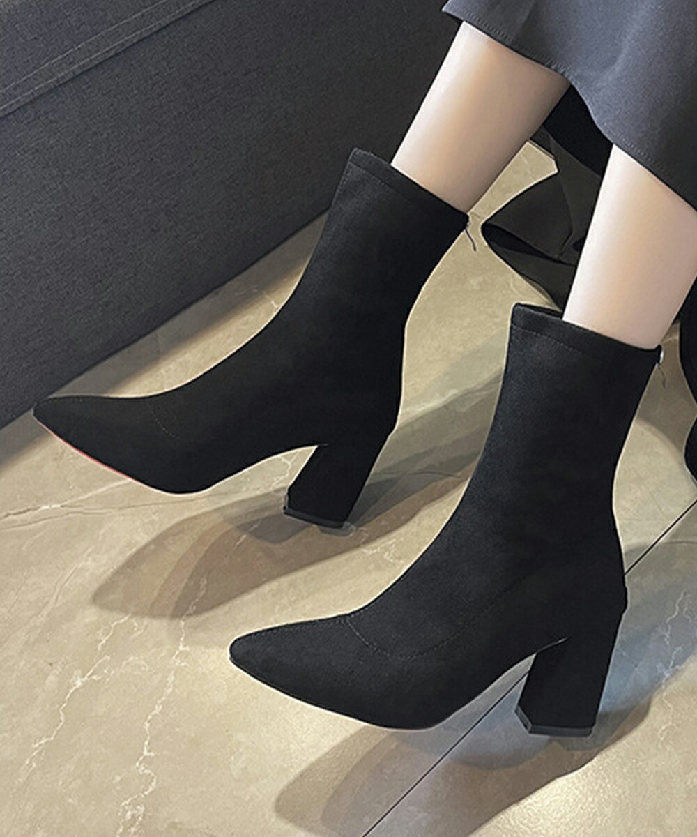 ブーティ ポインテッドトゥ 太ヒール 無地 美脚 通勤 OL 韓国 きれい 大人 おしゃれ シンプル 痛くない