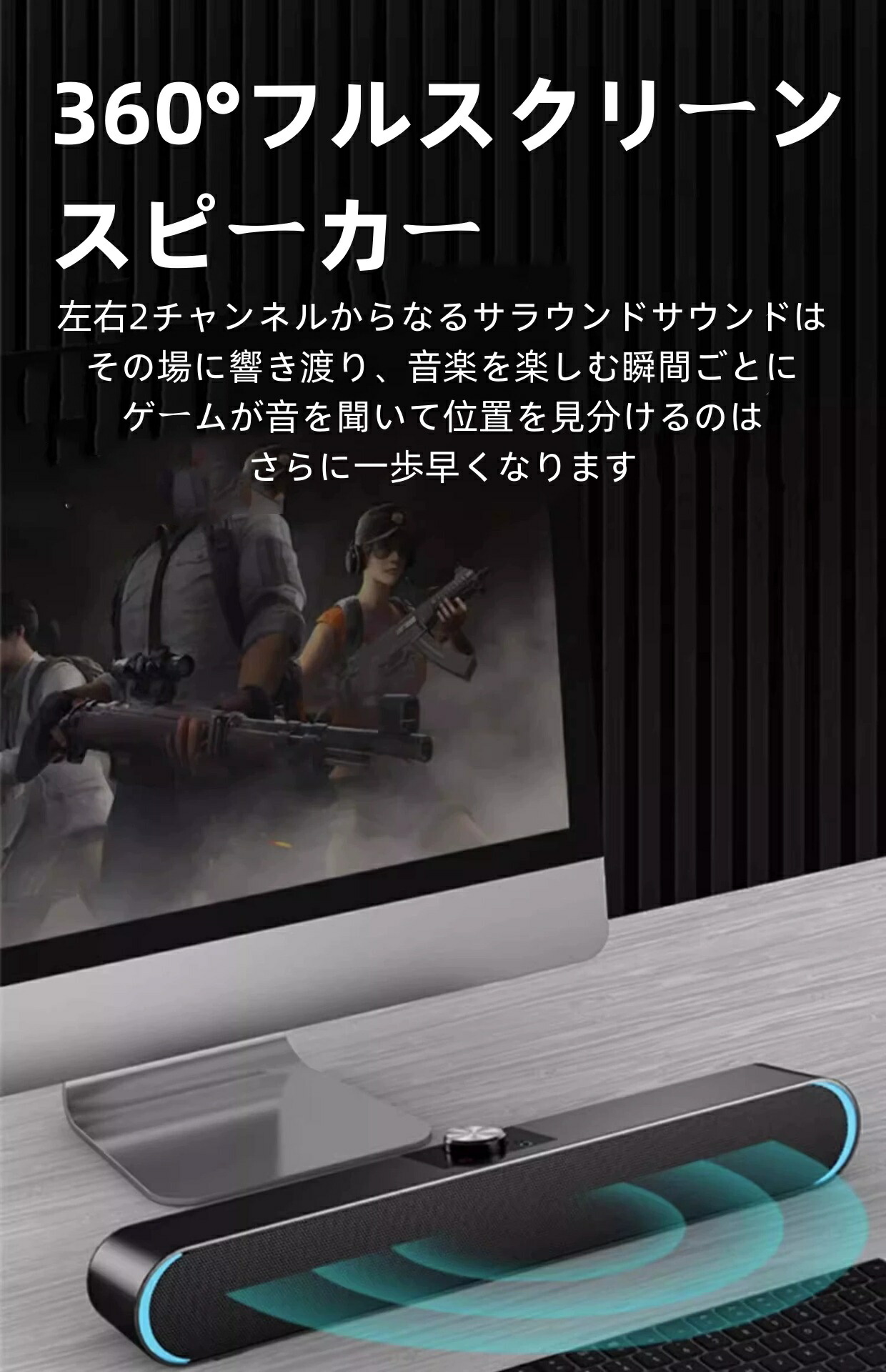 pcスピーカー サウンドバー 高音質 usb 有線 スピーカー パソコンスピーカー ステレオ 大音量 小型 コンパクト オシャレ