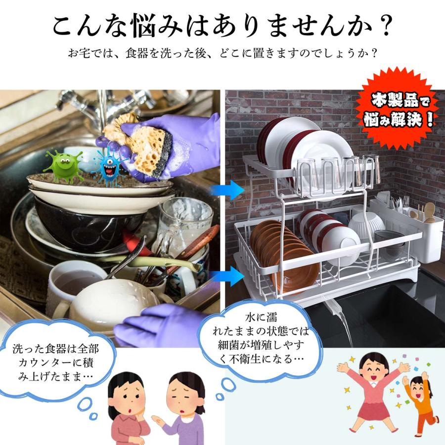 シンク 水切り 水切りラック 2段 シンク上 水切りかご スリム 食器 水切り シンク渡し スライド式 食器立て シンクサイド