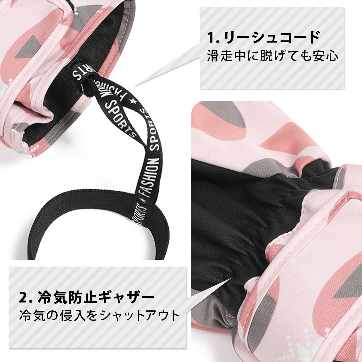 手首は調整可能なベルト付きで、2点ホールドで冷気の浸入をしっかり防ぎ、雪が入りにくい形状となっています。