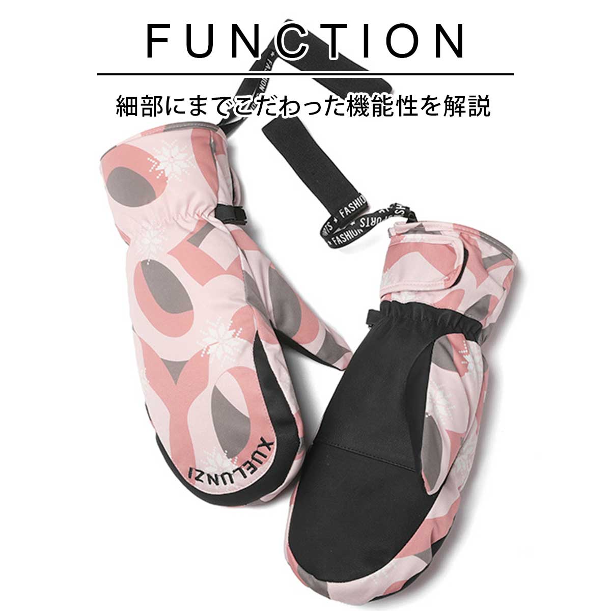 手袋の紛失防止の連結フックなど機能満載です。スノボ、スキー、バイク、通勤通学あらゆるシーンで活躍する高機能グローブです。