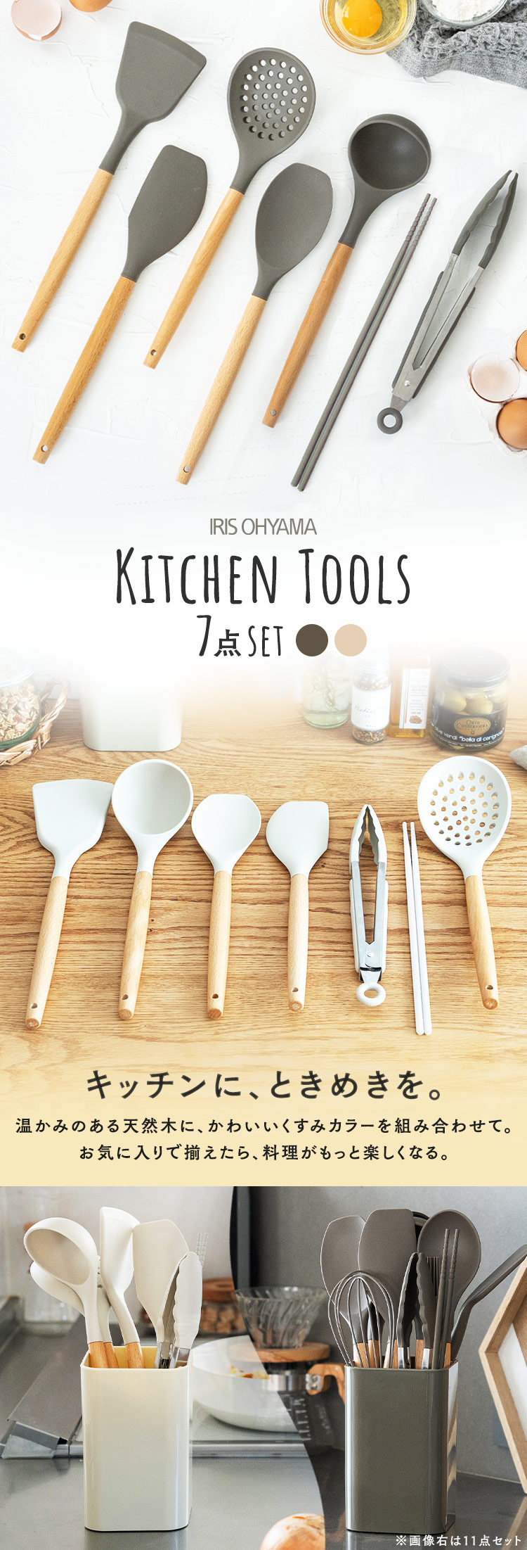 キッチンツール セット シリコン 収納 キッチンツールセット スタンド付き おしゃれ 木製 7点セット スタンド付き 一人暮らし アイリスオーヤマ