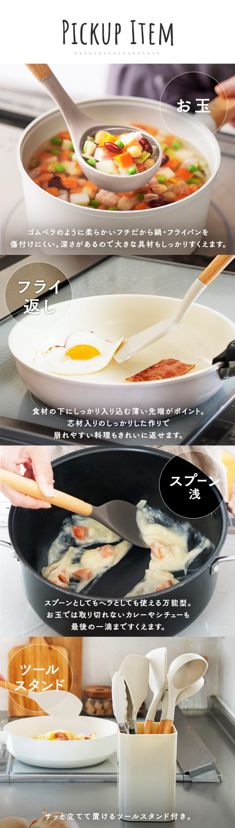 コーティングを傷つけにくく、フライパンも鍋も長持ち。