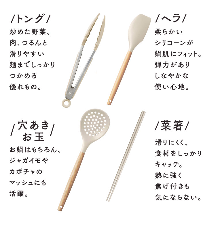 各ツール:持ち手/天然木、ヘッド/シリコーン