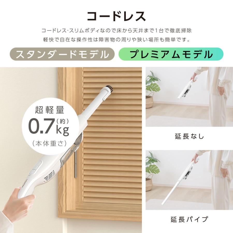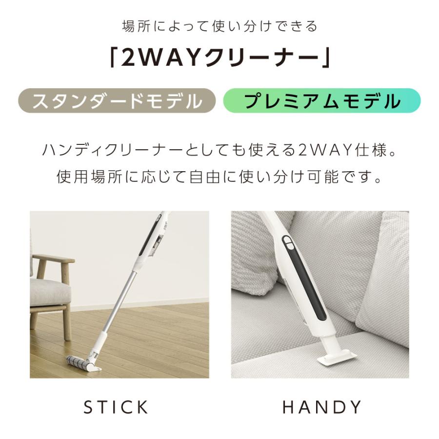 【コードレス】ハンディクリーナーとしても使える2WAY仕様。4種類ノズル スリムボディなので床から天井まで1台で徹底掃除軽快で自在な操作性は障害物の周りや狭い場所も簡単です。2段階調整自由自在。