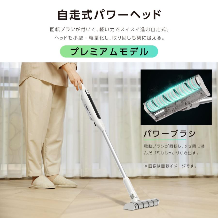 【自走式パワーヘッド】プレミアムモデルは自走式パワーヘッド回転ブラシが付いて、電動ブラシが回転し、軽い力ですき間に潜んだゴミもスイスイとしっかりかき出す。