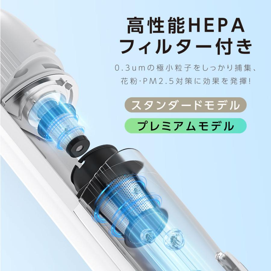 【安定したパワー供給とパワフル吸引力】超微細な粒子から小塵までゴミを残さずしっかり吸引。塵、ほこり、繊維、糸くず、髪の毛など逃さず吸引!高性能HEPAフィルターは微細ゴミをろ過して排気はクリーンです。0.3umの極小粒子をしっかり捕集、花粉PM2.5対策に効果を発揮!