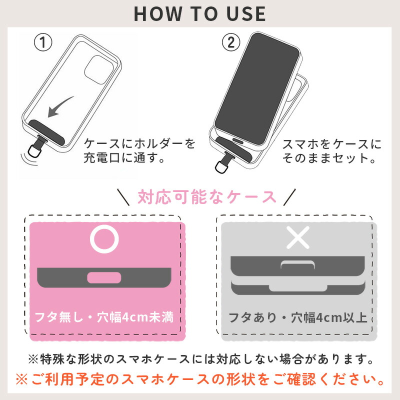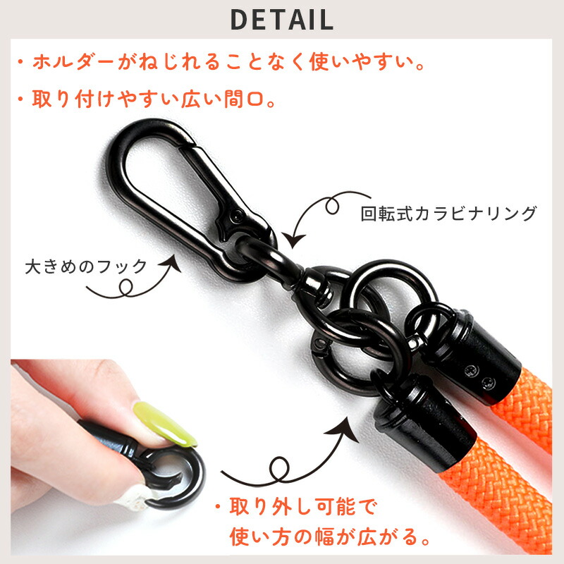 商品説明 10mmの太めスマホショルダーストラップです! 両手が空くので、通勤やショッピングなど日常生活に最適。 紐が太いので、丈夫で安心、なんといってもとってもおしゃれ。 さらに肩が痛くなりにくいです。 レザーバンドで長さの調整も可能です。 カラビナフックで小物を引っかけることもできます お持ちのケースにホルダーを挟んで使うだけでとても簡単です。 ホルダーを挟んだまま充電することも可能です。 豊富なカラーバリエーションの中から自分好みのカラーをお選びいただけます。