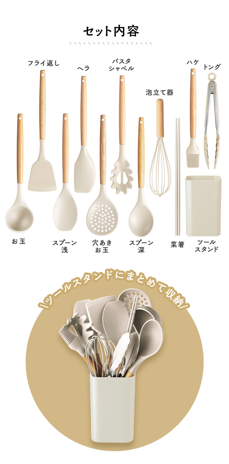 キッチンツール セット シリコン 収納 キッチンツールセット スタンド付き おしゃれ 木製 11点セット スタンド付き 一人暮らし アイリスオーヤマ