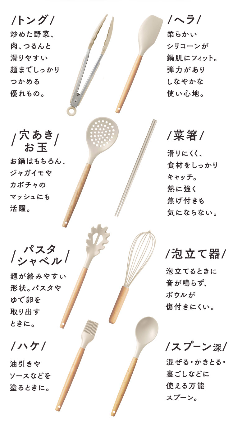 各ツール:持ち手/天然木、ヘッド/シリコーン