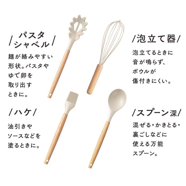 泡立て器:持ち手/天然木、ヘッド/シリコーン(心材ステンレス鋼)