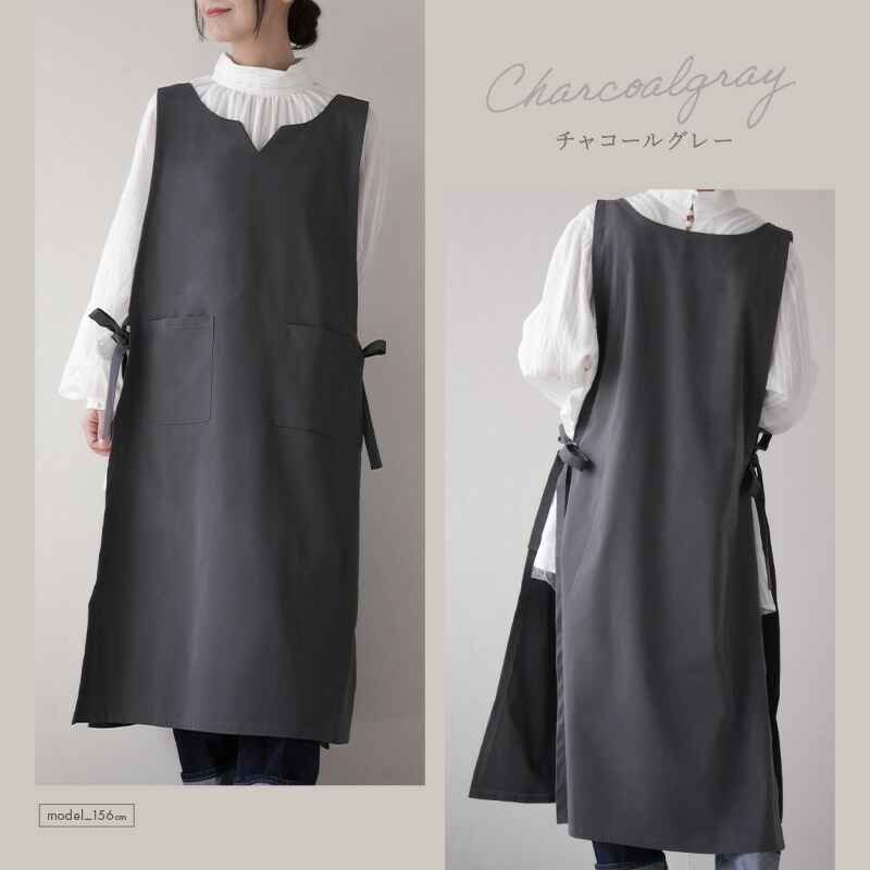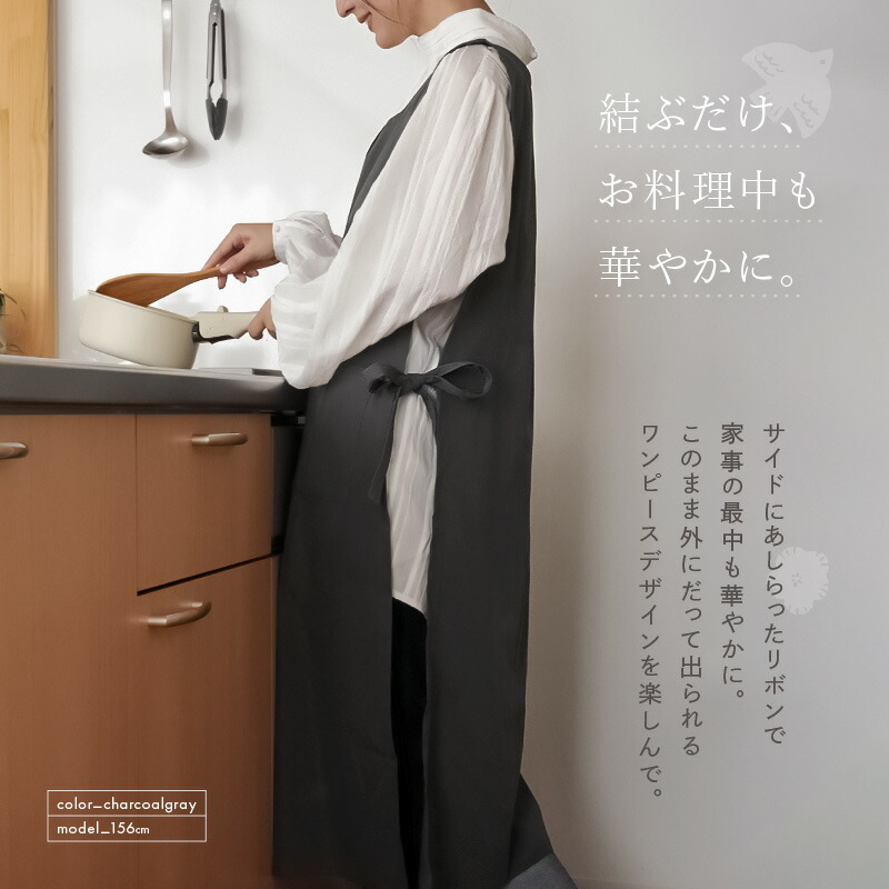 オシャレ シンプル 割烹着 ワンピース 洗濯可 軽量 軽い