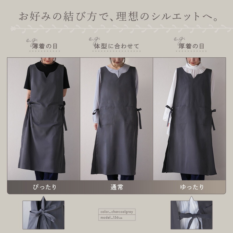エプロン かぶるだけ おしゃれ 保育士 大きいサイズ レディース メンズ エプロンドレス h型 無地 シワ防止 体型カバー ポケット付き リボン