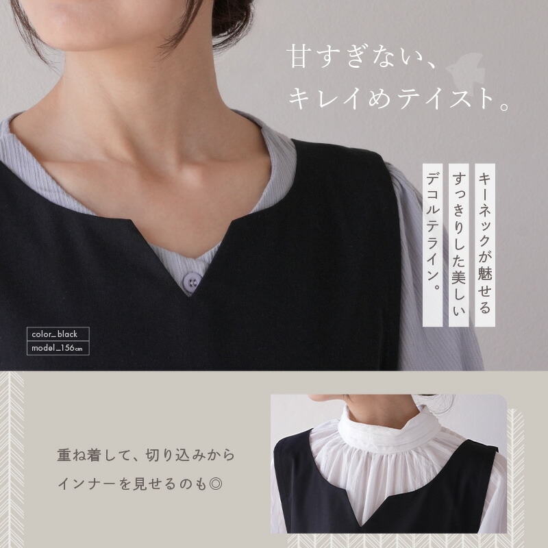 キーネックサイドリボンエプロン